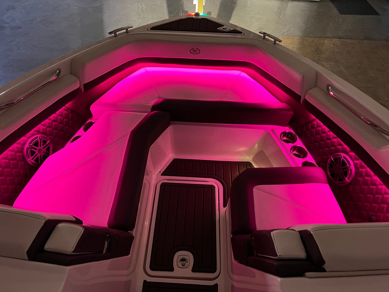 The 2023 Cobalt R6 is loaded with features that enhance both comfort and convenience, making every outing a pleasure. As a premium bowrider boat for sale, the R6 offers a spacious and thoughtfully designed cockpit, plush seating, and high-quality materials throughout. The open bow layout provides plenty of seating for guests, while the ergonomic helm ensures the captain enjoys both comfort and control. The R6’s generous length allows for a roomy swim platform, making it easy to access the water for swimming, lounging, or watersports. Storage compartments are strategically placed to keep your gear organized and out of the way, ensuring a clutter-free environment on board.