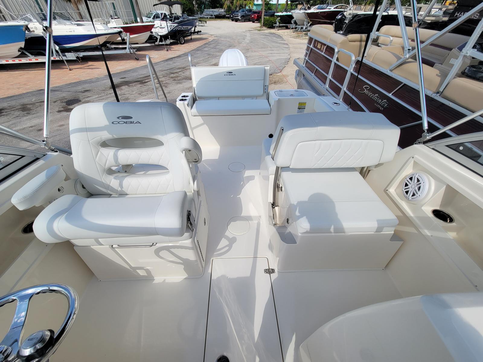 In summary, the 2024 Cobia 220 DC is a remarkable dual console boat for sale that combines power, innovation, and luxury in one sleek package. With its Yamaha F200XSA2 engine, digital electric steering, upgraded Edson steering wheel, plush white cushions, covered boarding ladder, 22-gallon livewell, Helm Master EX engine controls, dual 31 Series batteries, ultra bilge pump switch, and trim tabs with indicators, this Cobia boat for sale is designed to deliver unforgettable experiences on the water.If you are ready to elevate your boating lifestyle with a vessel that offers unmatched versatility, comfort, and performance, the Cobia 220 DC is the perfect choice. Contact your local dealer today to learn more about this exceptional dual console boat and start your next adventure on the water.
