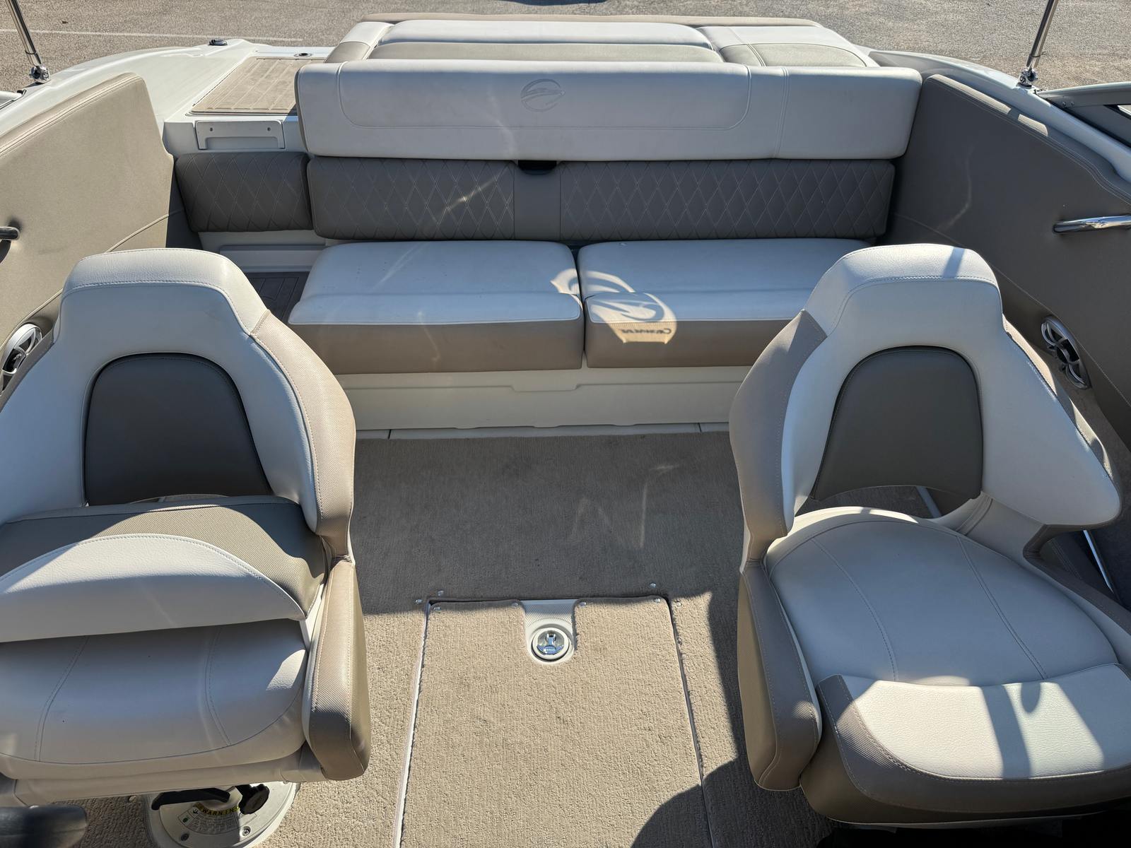 The 2017 Crownline 215 SS is a 21-foot bowrider that exemplifies the brand’s commitment to quality craftsmanship and innovative design. With its sporty profile and contemporary styling, this used bowrider is sure to turn heads at the marina or out on the lake. The 215 SS is built for versatility, making it an ideal choice for families, friends, and anyone looking to enjoy the best that boating has to offer. Its manageable size ensures easy handling and maneuverability, while the spacious interior provides ample room for passengers to relax and socialize.