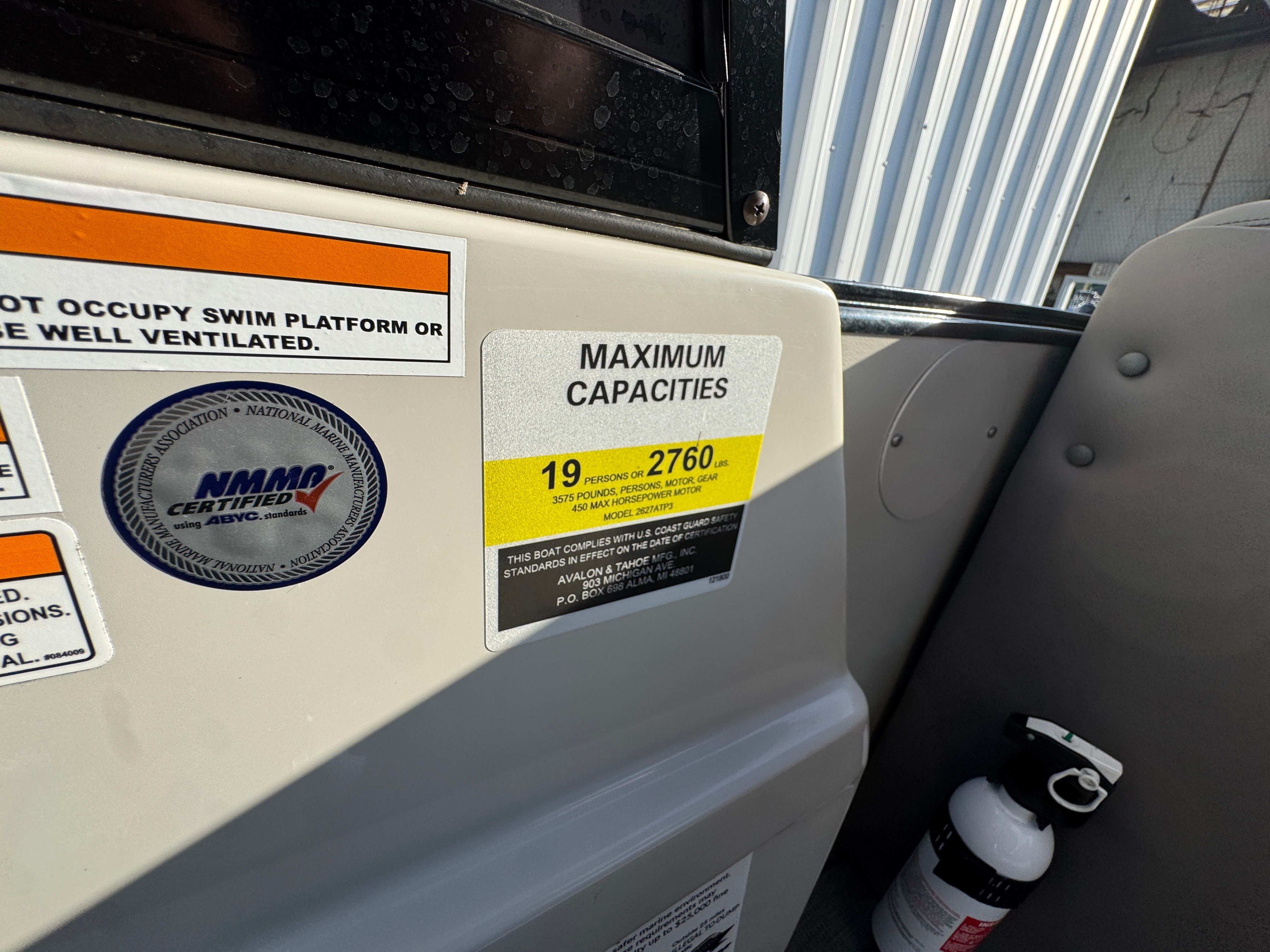 At the heart of the Avalon CAT QL-W-27T is a robust single engine delivering an impressive 350 horsepower. This powerful setup ensures smooth acceleration, responsive handling, and the ability to glide effortlessly across the water. Whether you are towing water toys, heading out for a day of fishing, or simply enjoying a leisurely cruise, the performance of this pontoon boat is sure to impress. The combination of Avalon’s advanced hull design and the high-output engine provides a stable, comfortable ride, even when the water gets choppy. For those who demand both power and efficiency, this Avalon boat for sale is a standout choice.