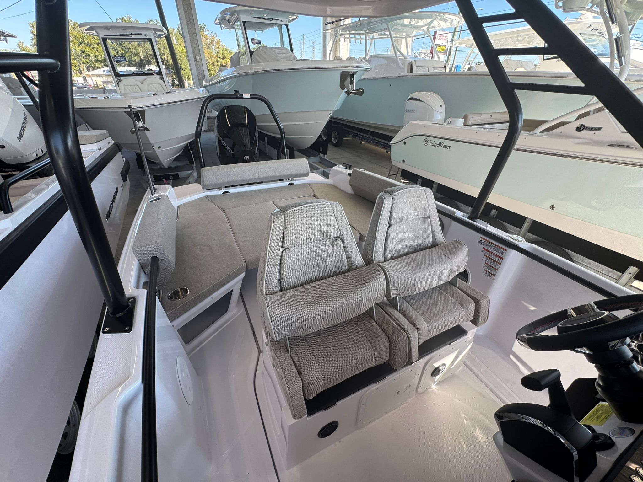 The Axopar 22 T-Top is designed with practicality in mind, making ownership both enjoyable and convenient. The compact 22-foot length allows for easy storage and transport, whether you’re keeping the boat at a marina or trailering it to your favorite launch site. The bow thruster simplifies docking, even in tight spaces, while the rub rail protects your investment from bumps and scrapes.Fuel efficiency is a hallmark of the Mercury Verado V8 engine, helping you maximize your time on the water without frequent refueling stops. The freshwater system ensures you have clean water for rinsing, cleaning, and personal use, adding to the overall comfort and convenience. With its versatile features and manageable size, this Center Console boat is perfect for both novice boaters and seasoned enthusiasts.