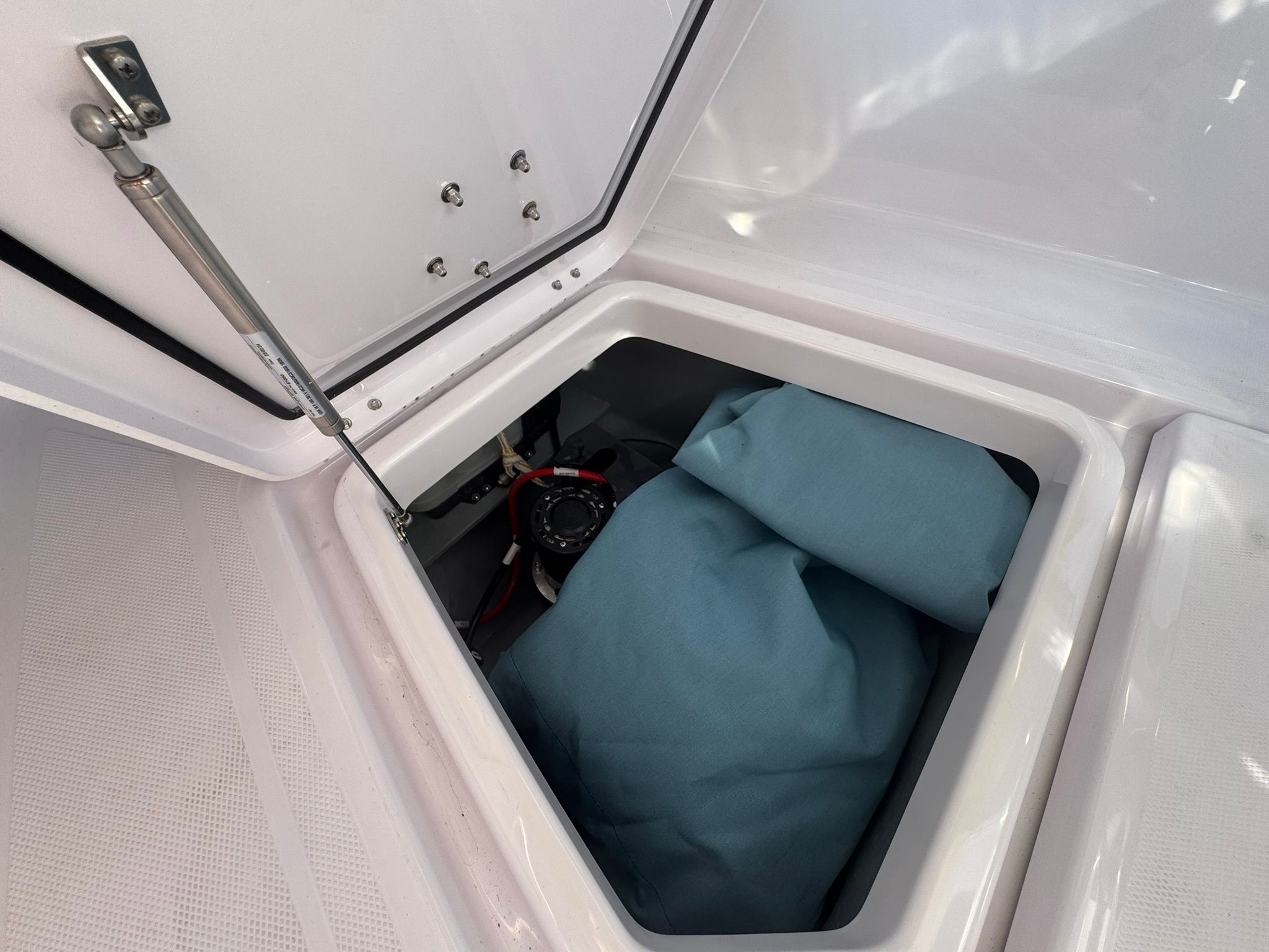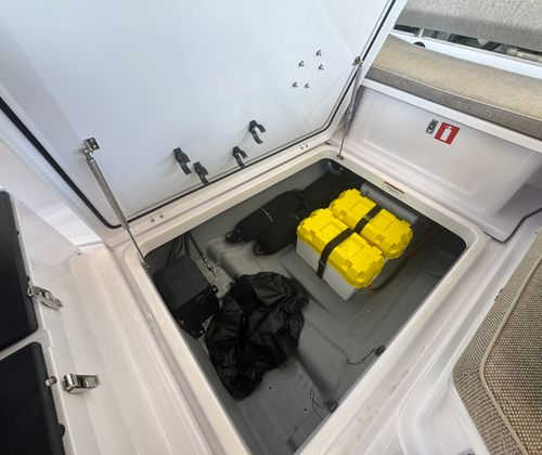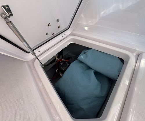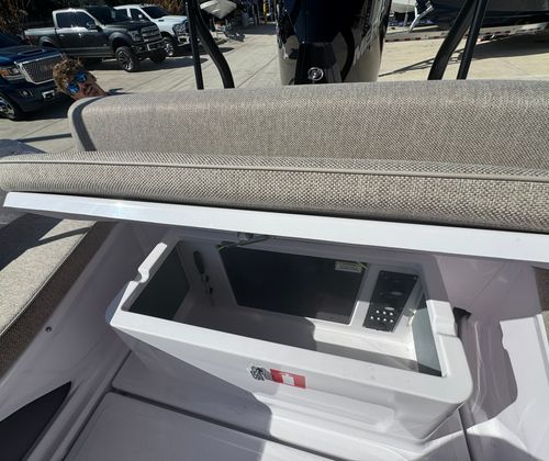 The Axopar 22 T-Top is packed with premium features designed to enhance your boating experience. Enjoy the convenience of a freshwater system with an electric fresh water flush toilet and a 25-liter septic tank, ensuring comfort and hygiene during extended trips. The advanced Chartplotter Simrad NSS4 12" provides intuitive navigation, while the Echo sounder with thru-hull installation offers precise depth readings for safe passage.For onboard entertainment, the Clarion basic audio system sets the mood, and the upgraded Clarion audio entertainment system takes your listening experience to the next level. The freshwater system includes a 32-liter tank with a shower on the aft deck, perfect for rinsing off after a swim or cleaning up before heading home. The seat base features a top-loaded refrigerator and sink, allowing you to keep refreshments cool and prepare snacks with ease.Additional highlights include a Quick bow thruster for effortless docking and maneuvering, a durable rub rail for added protection, and high-quality onboard fittings that reflect Axopar’s commitment to excellence. These features make the Axopar 22 T-Top a standout Center Console boat for sale in today’s market.