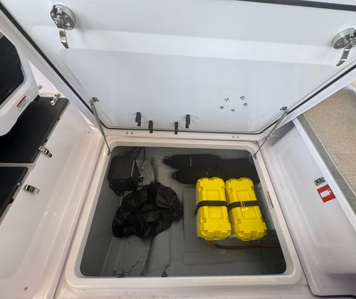 - Freshwater system - Seat base with top-loaded refrigerator and sink