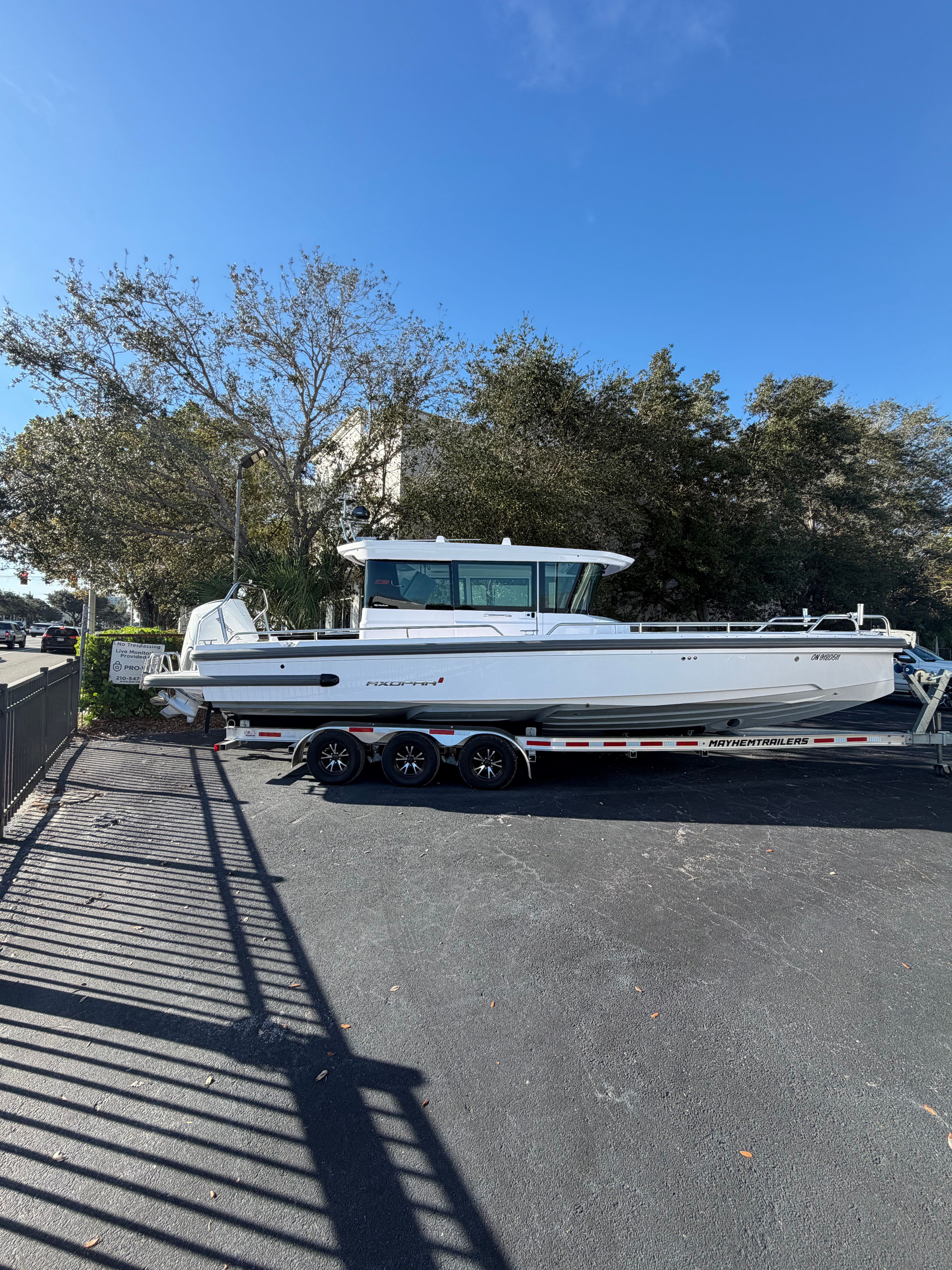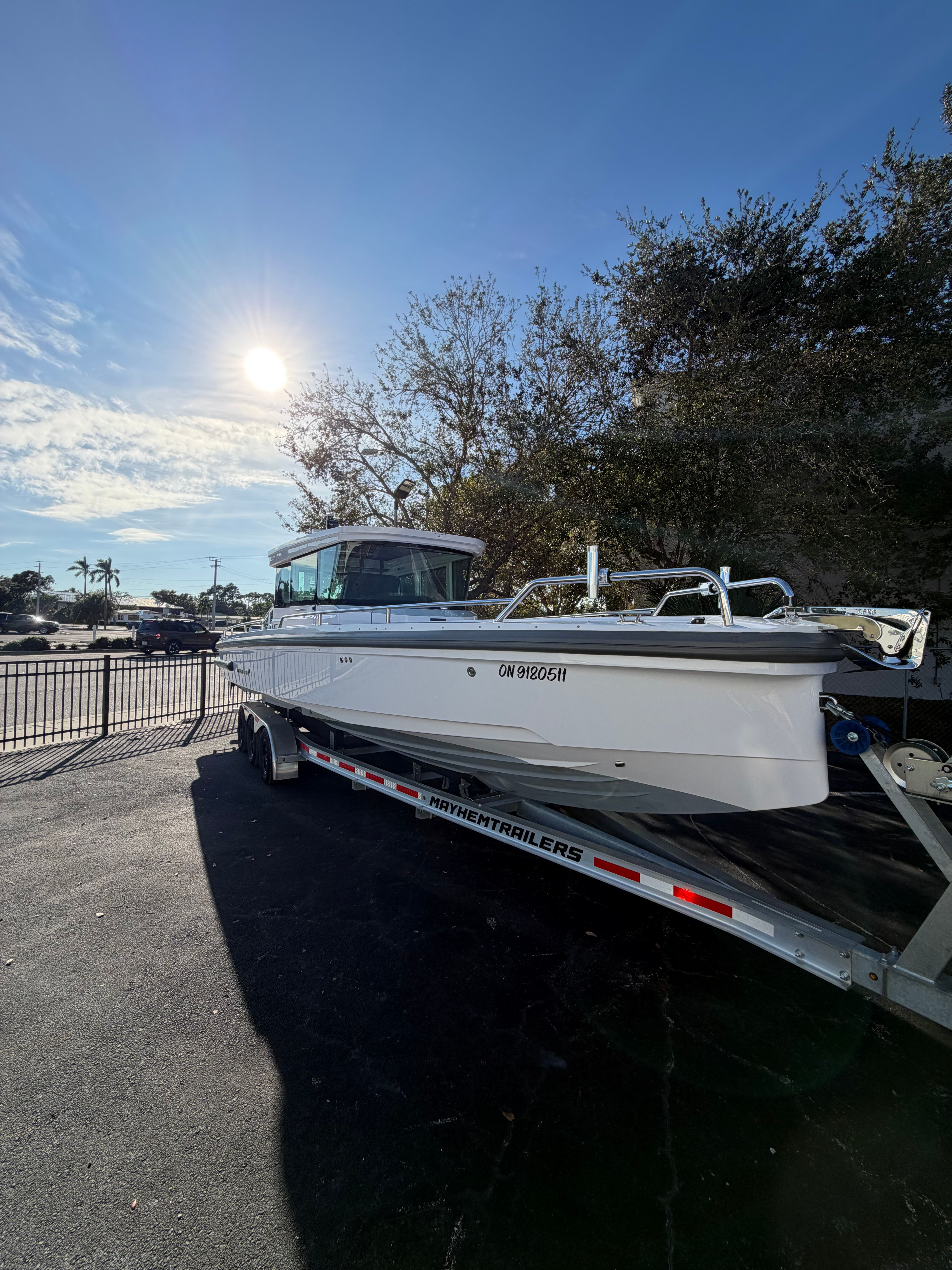 Discover the ultimate boating experience with the 2023 Axopar AX28 Cabin, paired with a Mayhem triple axle trailer for ease of transport and convenience.
