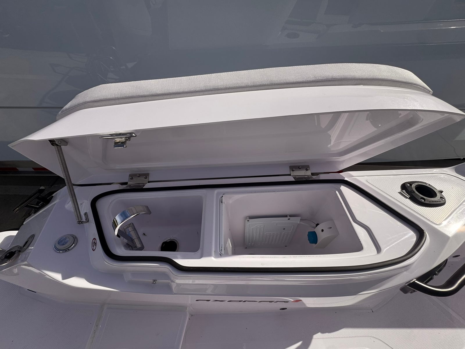 The Axopar 29 CCX is as practical as it is stylish. Its center console layout offers excellent visibility and control, making docking and maneuvering in tight spaces a breeze. The thoughtful inclusion of features like the wash down pump simplifies post-adventure cleanup, while the robust rub rail protects the hull during docking and close-quarters handling.Storage solutions are seamlessly integrated throughout the boat, ensuring you have plenty of space for gear, water toys, and personal belongings. The efficient hull design and twin-engine setup contribute to impressive fuel efficiency, allowing you to spend more time on the water and less time at the fuel dock. Whether you are planning a quick afternoon escape or an all-day excursion, the Axopar 29 CCX is equipped to handle it all with ease.