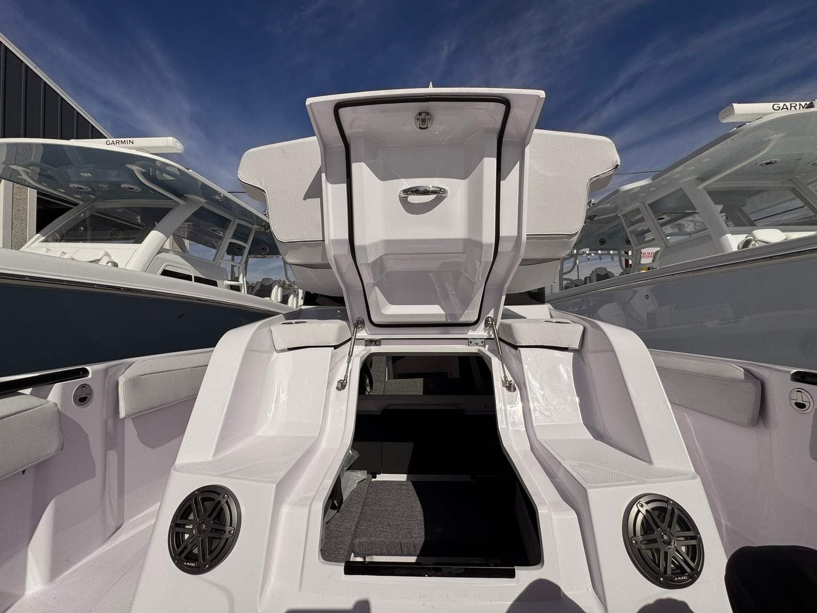 Power and agility are at the heart of the Axopar 29 CCX. Equipped with twin engines delivering a combined 500 horsepower, this center console boat promises exhilarating acceleration and impressive top speeds. The dual-engine setup not only enhances performance but also provides added reliability and maneuverability, making it ideal for both seasoned captains and those new to boating. Whether you are cruising along the coastline, exploring hidden coves, or heading offshore for a day of fishing, the Axopar 29 CCX delivers a smooth, responsive ride that inspires confidence in any conditions.