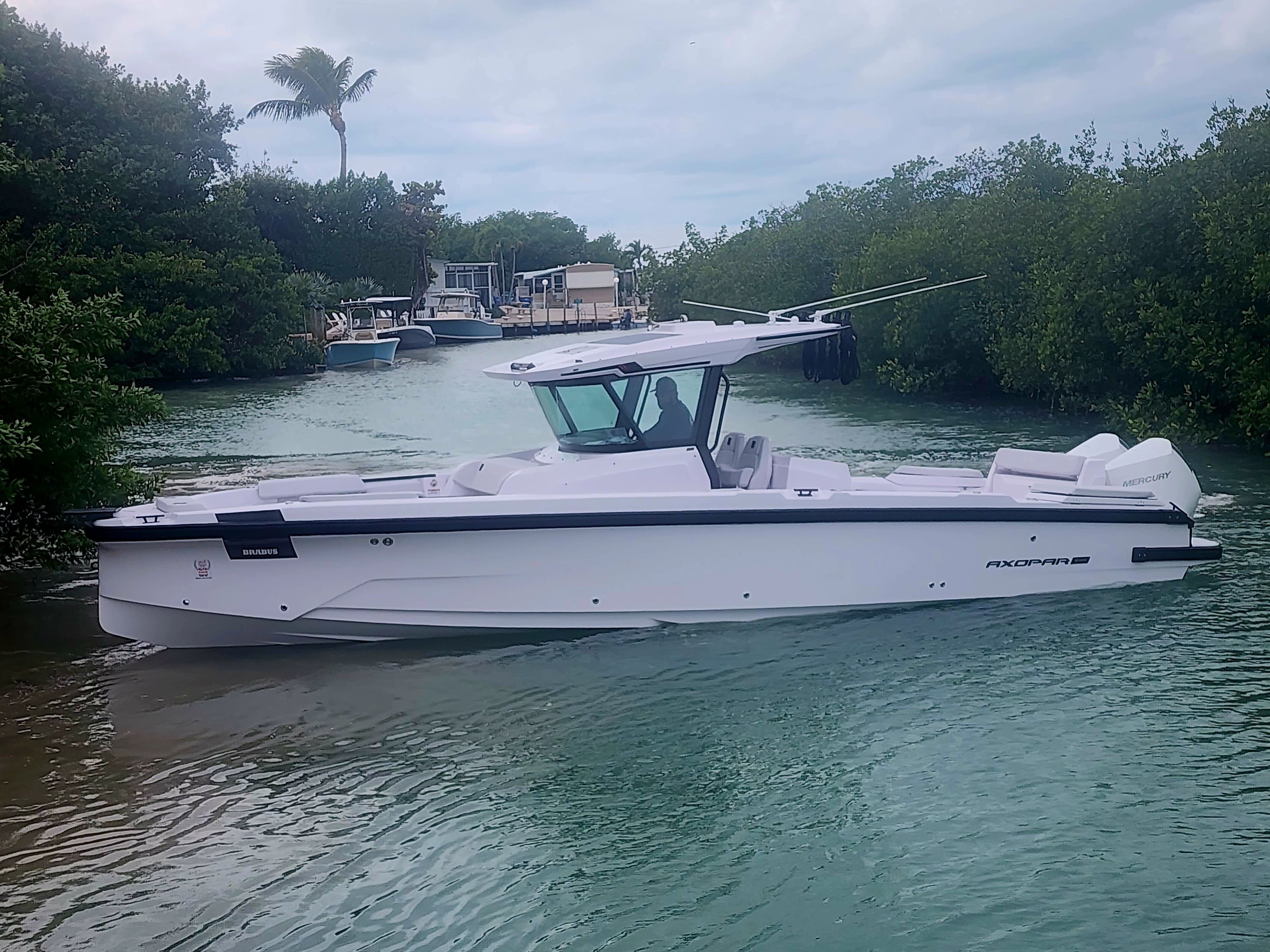 Versatility is at the core of the Axopar 29 CCX, making it an ideal choice for a wide range of boating activities. Picture yourself embarking on family outings, where the spacious U-sofa and bow table create the perfect setting for picnics, games, and laughter under the open sky. For fishing enthusiasts, the open deck layout and ample storage provide a functional and comfortable platform for casting lines and reeling in the catch of the day.If luxury getaways are more your style, the BRABUS line trim package and underwater lights set the stage for unforgettable evenings on the water, whether you are anchored in a secluded bay or cruising along the coastline. The advanced navigation system ensures you can chart your course with confidence, opening up a world of possibilities for exploration and adventure.