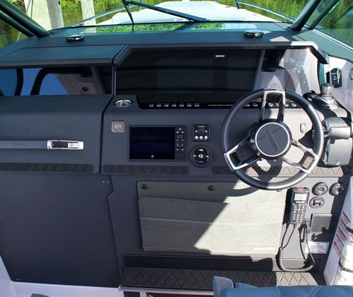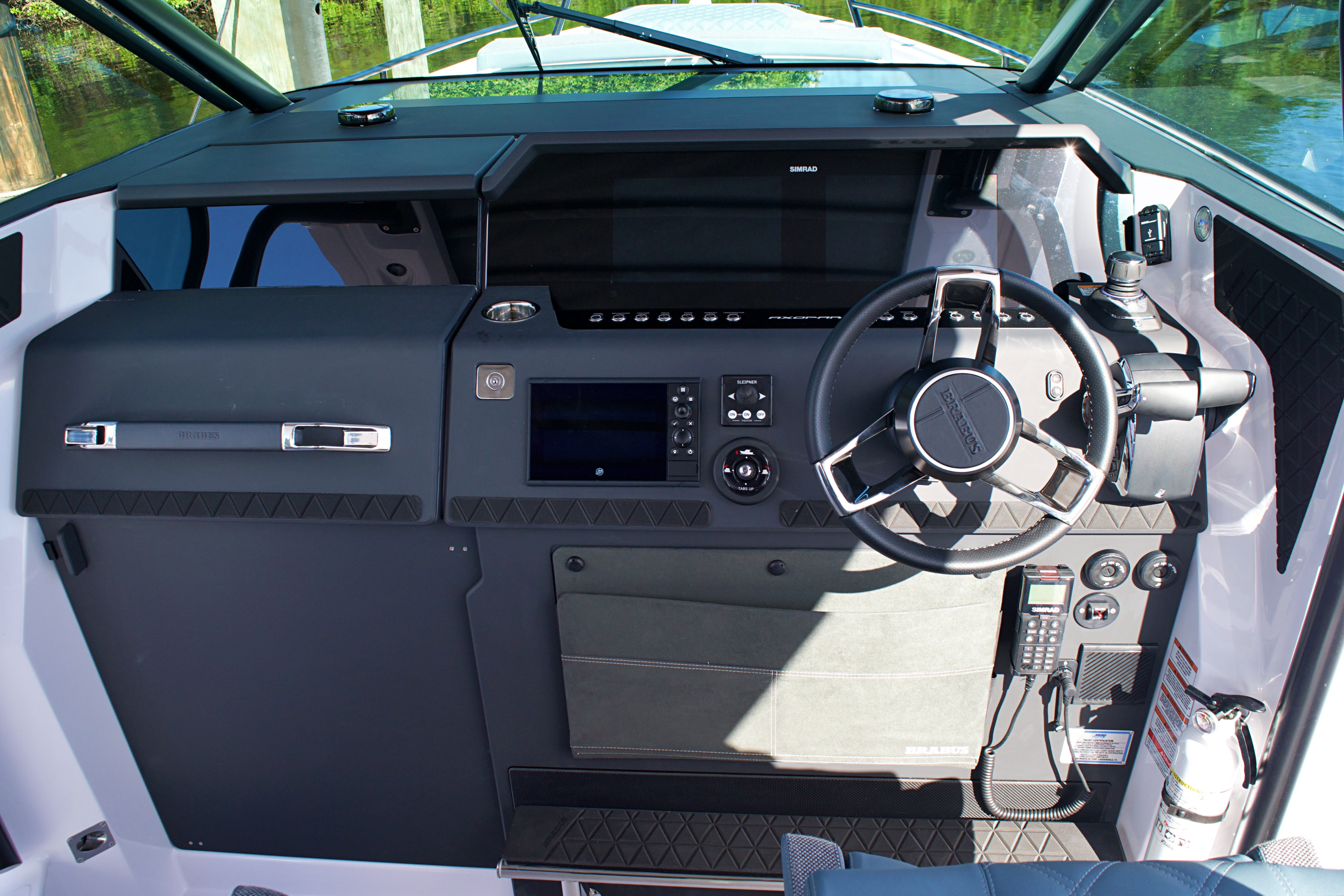Powering the Axopar 37 Sun Top are two robust engines, delivering a combined 800 horsepower for exhilarating speed and agile handling. This impressive powertrain ensures smooth cruising, quick acceleration, and reliable performance in a variety of conditions. Whether you’re navigating coastal waters, exploring hidden coves, or enjoying high-speed runs, the Axopar 37 Sun Top’s twin engines provide the confidence and capability you need for every adventure. The petrol-powered ST configuration is engineered for efficiency and reliability, making it an ideal choice for both seasoned boaters and newcomers alike.
