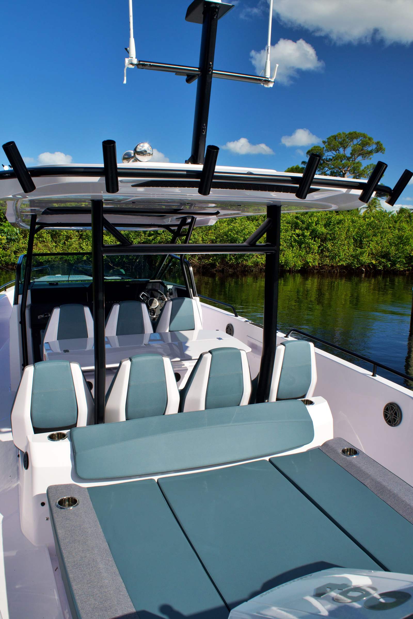 - Aft deck layout - Removable cushions for aft fender boxes, Petrol