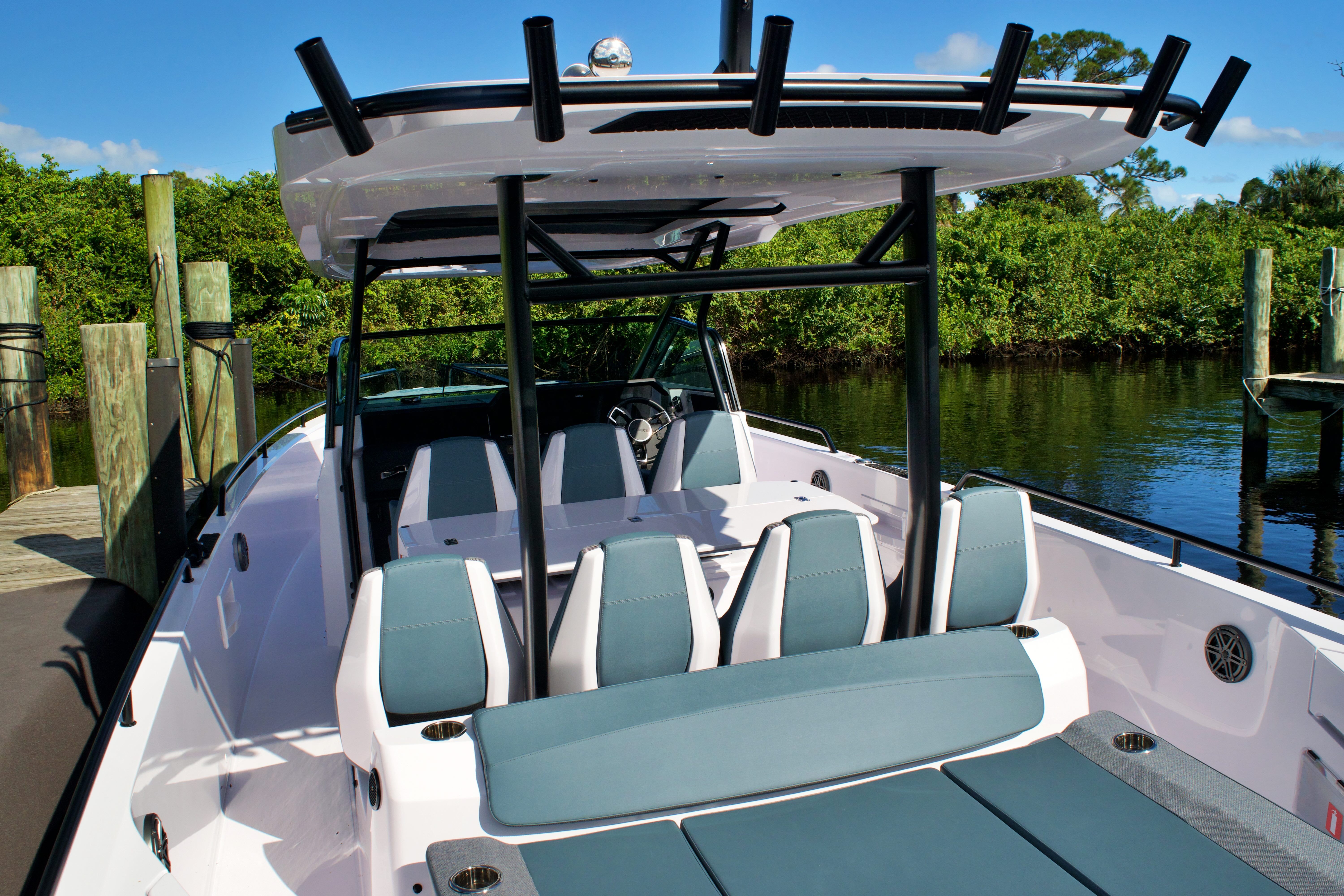 The Axopar 37 Sun Top shines in a variety of scenarios, making it the perfect choice for families, couples, and groups of friends. Host lively gatherings with the premium audio system and wet bar, or enjoy quiet moments on the sundeck with panoramic views of the water. The Center Console layout is ideal for fishing trips, offering plenty of space for casting lines and storing equipment. For luxury getaways, the BRABUS Line enhancements and Iconic ST Edition styling create an upscale atmosphere that’s perfect for celebrating special occasions.Take advantage of the freshwater shower after swimming or water sports, and use the multi-storage compartments to keep your gear organized and accessible. The advanced lighting package sets the stage for romantic evening cruises or late-night adventures, while the efficient engines ensure you can explore further and faster. Whether you’re seeking excitement, relaxation, or a blend of both, the Axopar 37 Sun Top delivers an unparalleled boating experience.