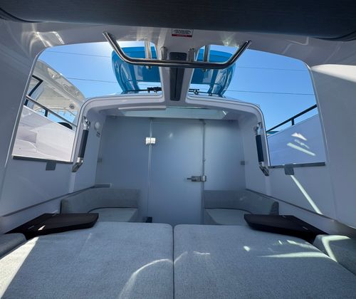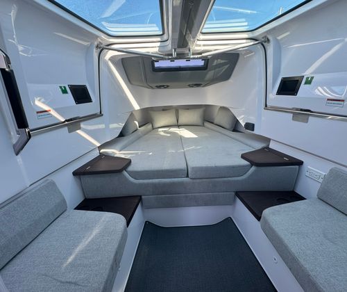Forward cabin with natural light and easy access via Gull Wing Doors