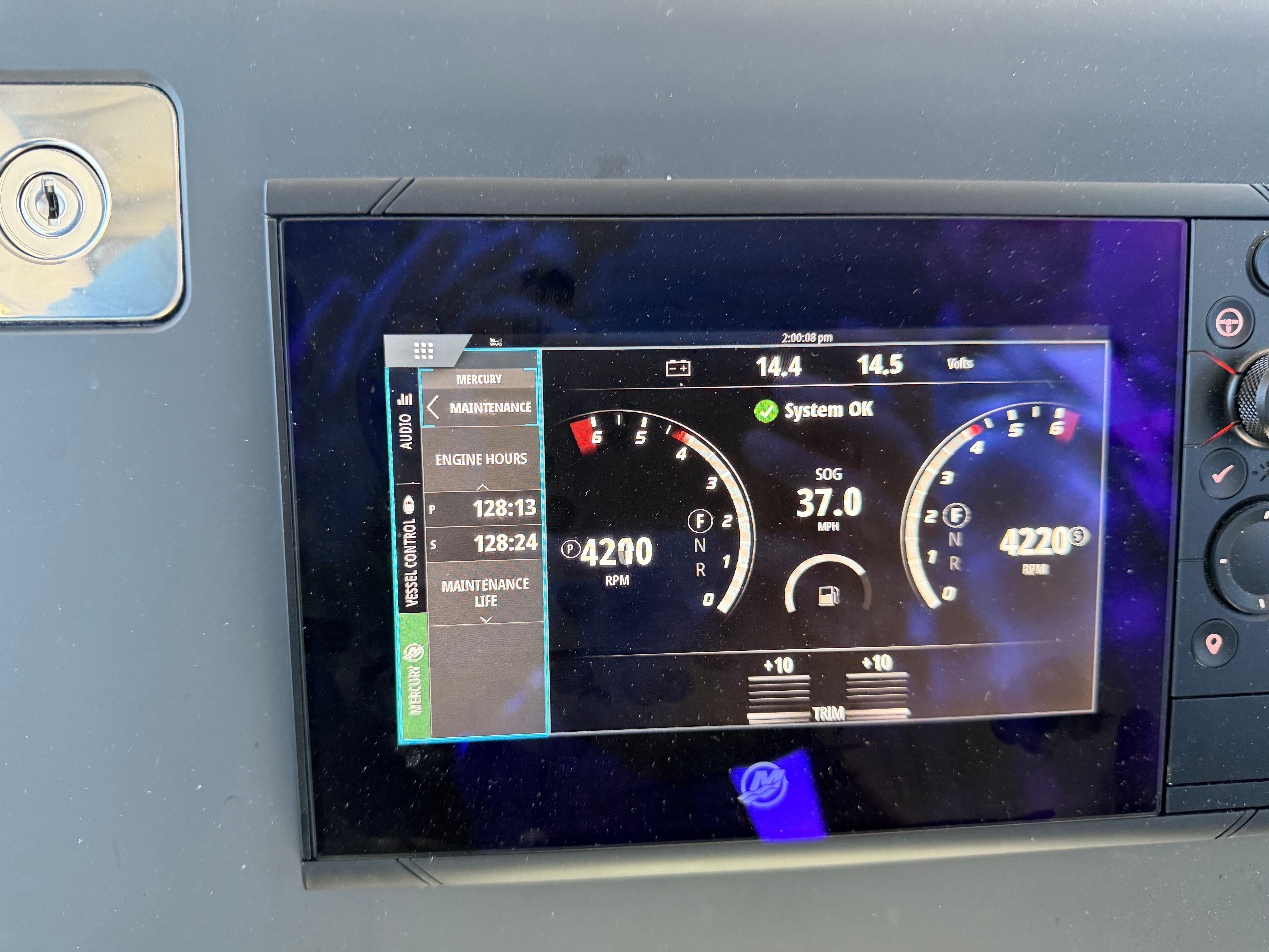Power and precision are at the heart of the Axopar 37 XC. Equipped with twin engines delivering a combined 600 horsepower, this center console boat offers thrilling acceleration and impressive top speeds. With only 100 engine hours, the motors are in excellent condition, providing reliable performance for many adventures to come. The dual-engine setup ensures smooth handling and responsive maneuverability, making docking and navigating tight spaces a breeze. Whether you are chasing the horizon or exploring hidden coves, the Axopar 37 XC delivers a dynamic and enjoyable ride every time you take the helm.