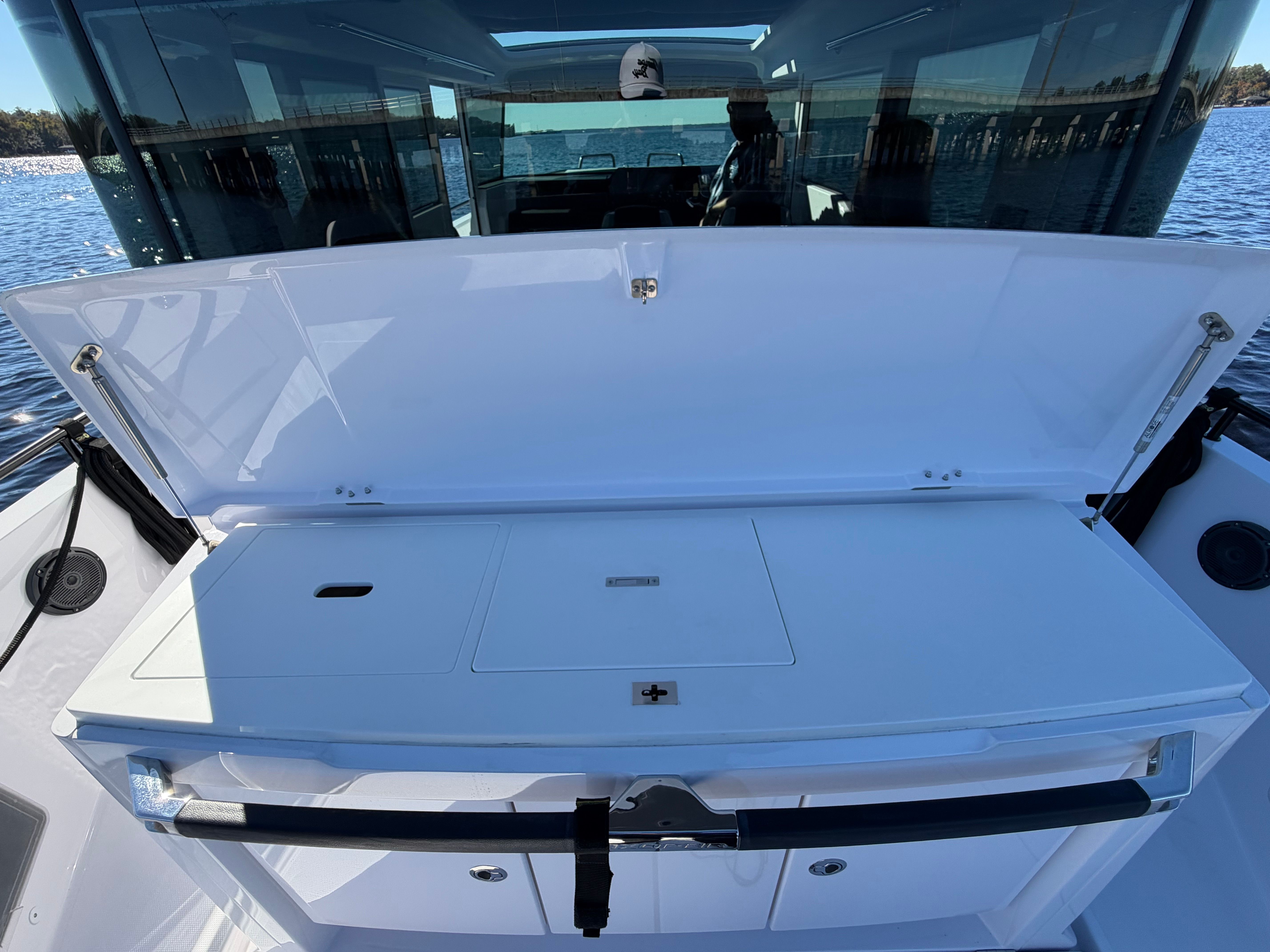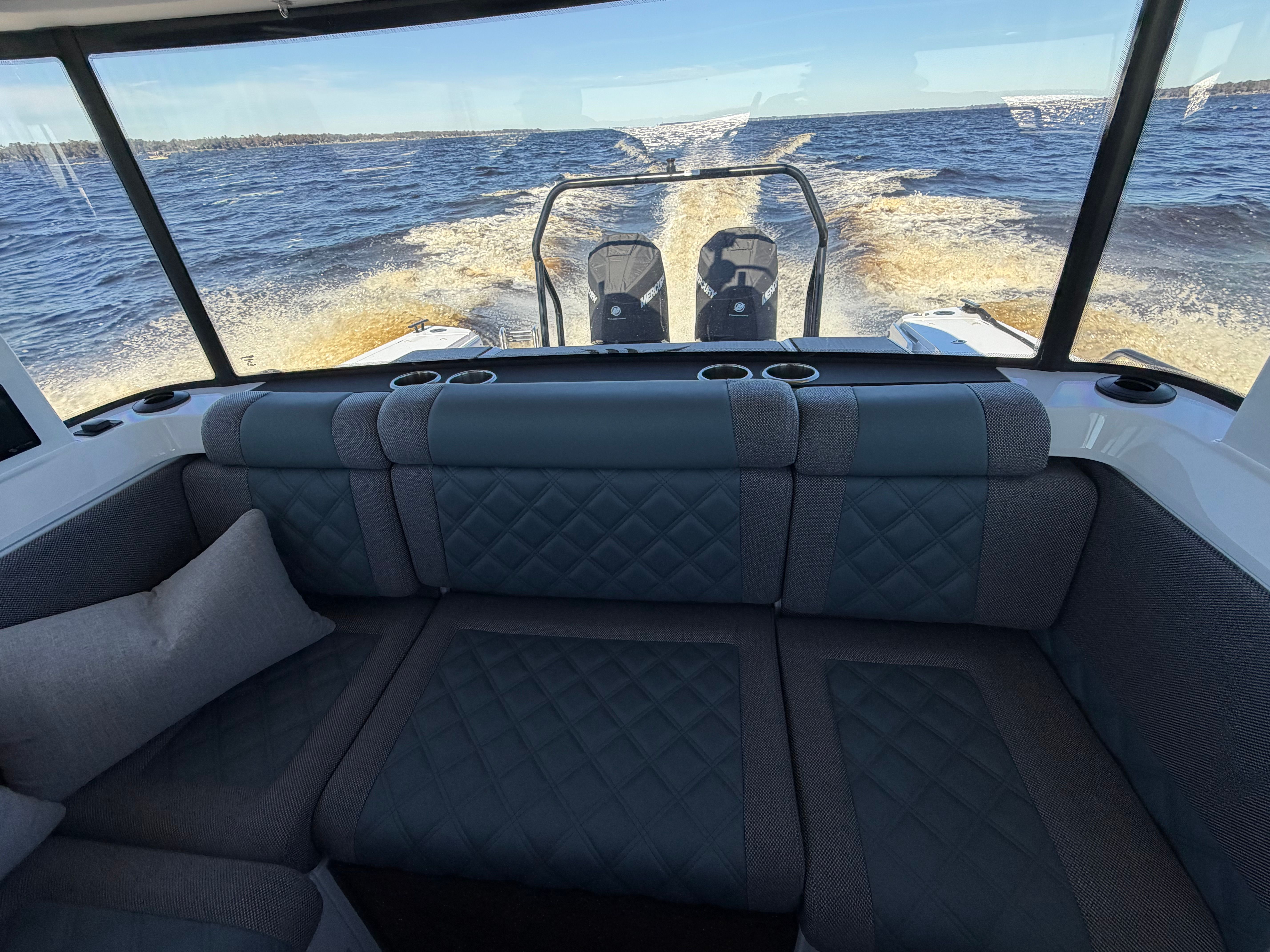 The Axopar 37 XC is packed with features designed to enhance your time on the water. Its spacious center console layout provides easy access around the deck, allowing for seamless movement whether you are fishing, entertaining, or simply relaxing. The enclosed helm offers protection from the elements, ensuring comfort during long days on the water or unexpected weather changes. The ergonomic helm station is thoughtfully designed for maximum visibility and control, putting all essential functions at your fingertips.Generous seating arrangements throughout the boat create inviting spaces for socializing and unwinding. The expansive bow area is perfect for sunbathing or enjoying panoramic views, while the aft deck offers plenty of room for fishing or setting up water sports equipment. Storage compartments are strategically placed to keep your gear organized and out of the way, maximizing usable space without sacrificing convenience.