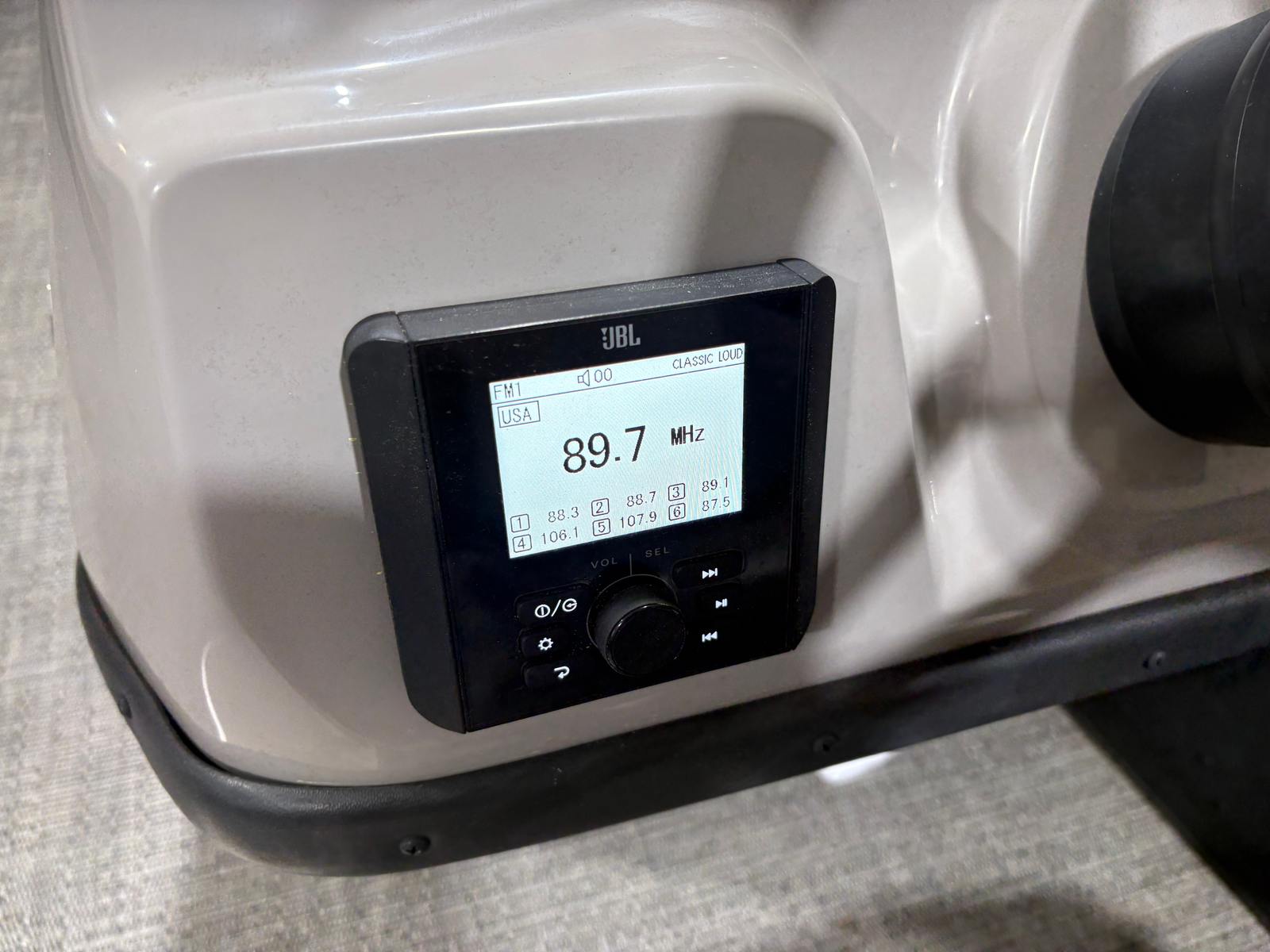 Powered by a single engine with an impressive 150 horsepower, the Barletta Aria A22QC provides a smooth and responsive ride. With only 35 engine hours, you can be confident in the reliability and longevity of this pontoon’s powertrain. The 150 HP engine offers the perfect balance of power and efficiency, allowing you to cruise comfortably, tow water toys, or reach your favorite fishing spots with ease. Whether you are navigating calm lakes or exploring winding rivers, the performance of this Barletta boat for sale ensures every outing is both exhilarating and enjoyable.