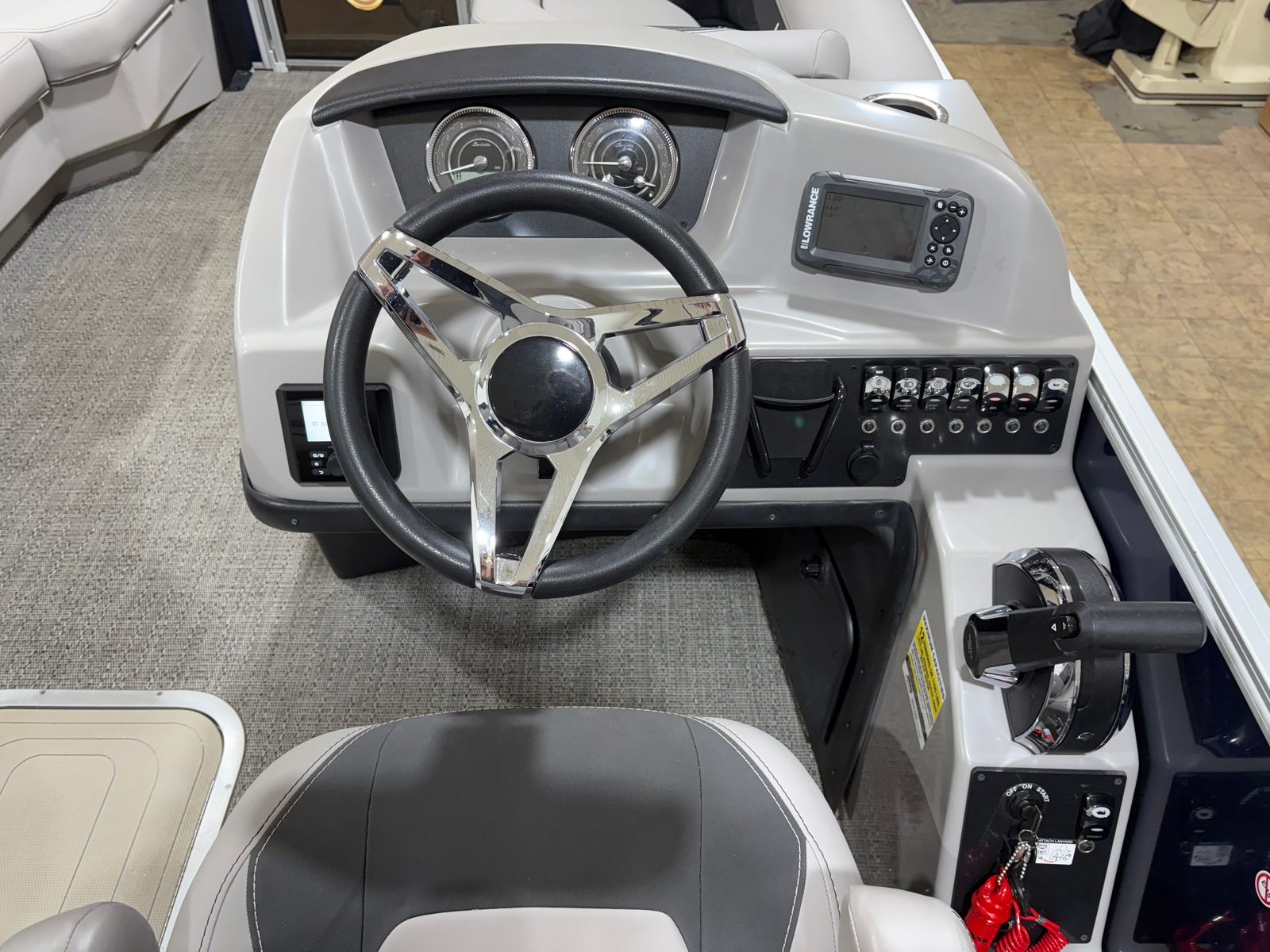 The Barletta Aria A22UC is thoughtfully equipped with a range of features designed to enhance comfort, convenience, and enjoyment on the water. The Triple Toon Package Aria provides added stability and buoyancy, ensuring a smooth and steady ride even in choppier conditions. The in-floor midship storage offers a practical solution for stowing gear, water toys, and personal items, keeping the deck clutter-free and organized. The furniture, finished in Tempest Gray, exudes sophistication and comfort, inviting you and your guests to relax in style. The flooring, crafted from Amore Gray material, is both durable and visually appealing, complementing the overall aesthetic of the boat. The rig engine with standard prop ensures reliable propulsion and efficient performance, making every journey effortless and enjoyable.
