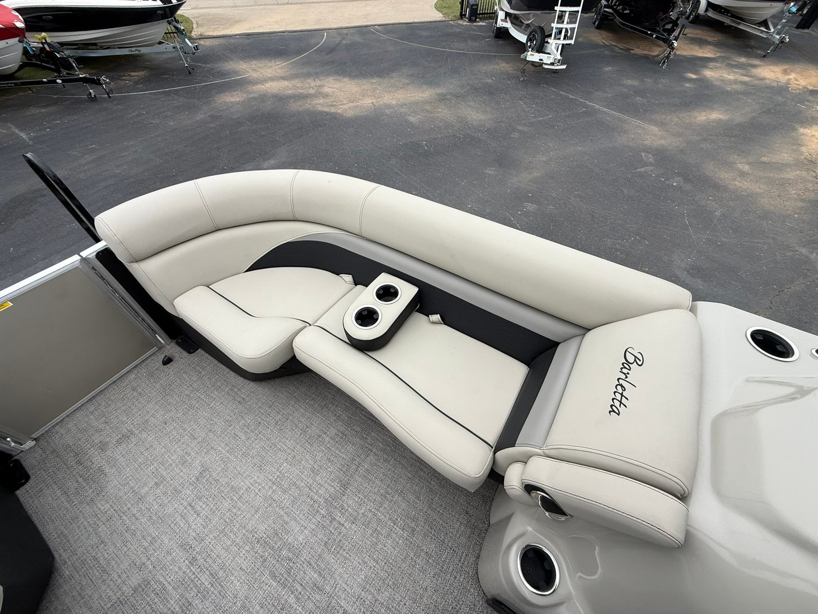 Equipped with quad loungers, dual captain’s chairs, a powered Bimini, ample storage, and Barletta’s reputation for ride stability and comfort, this boat is perfectly set up for long, relaxing days on the water.