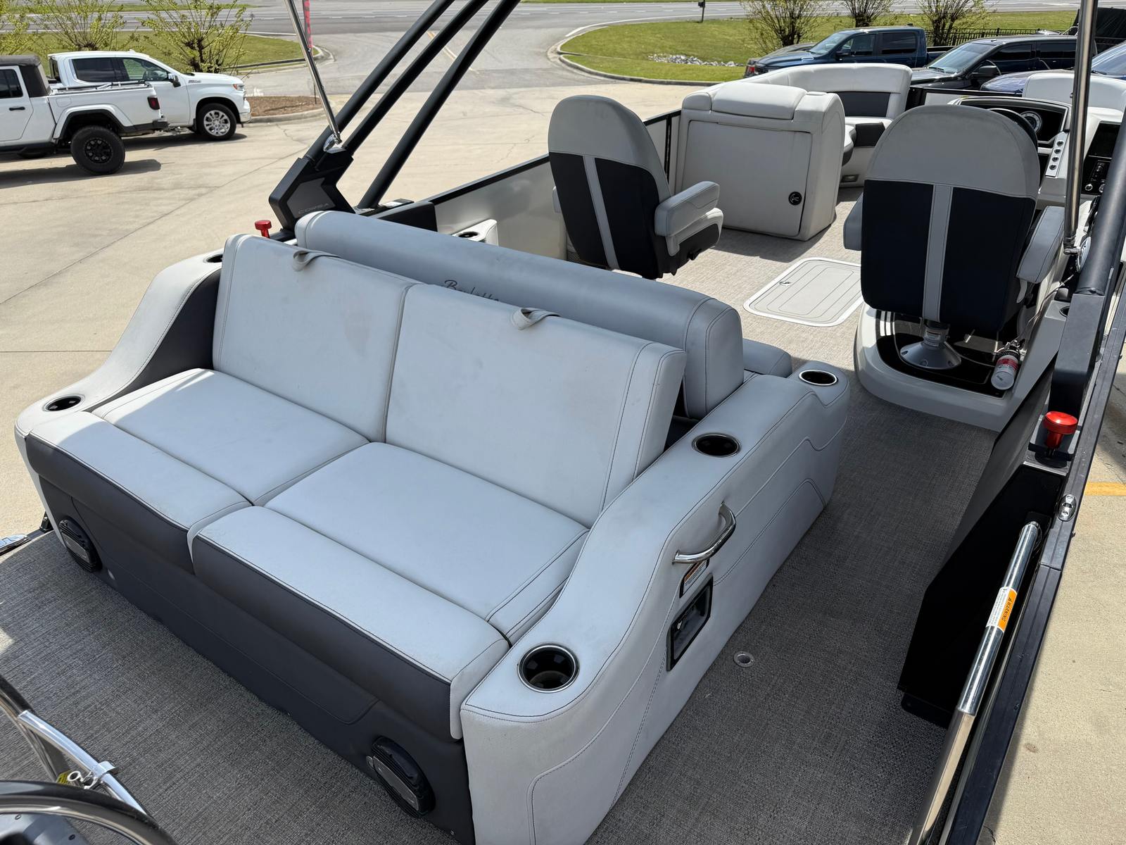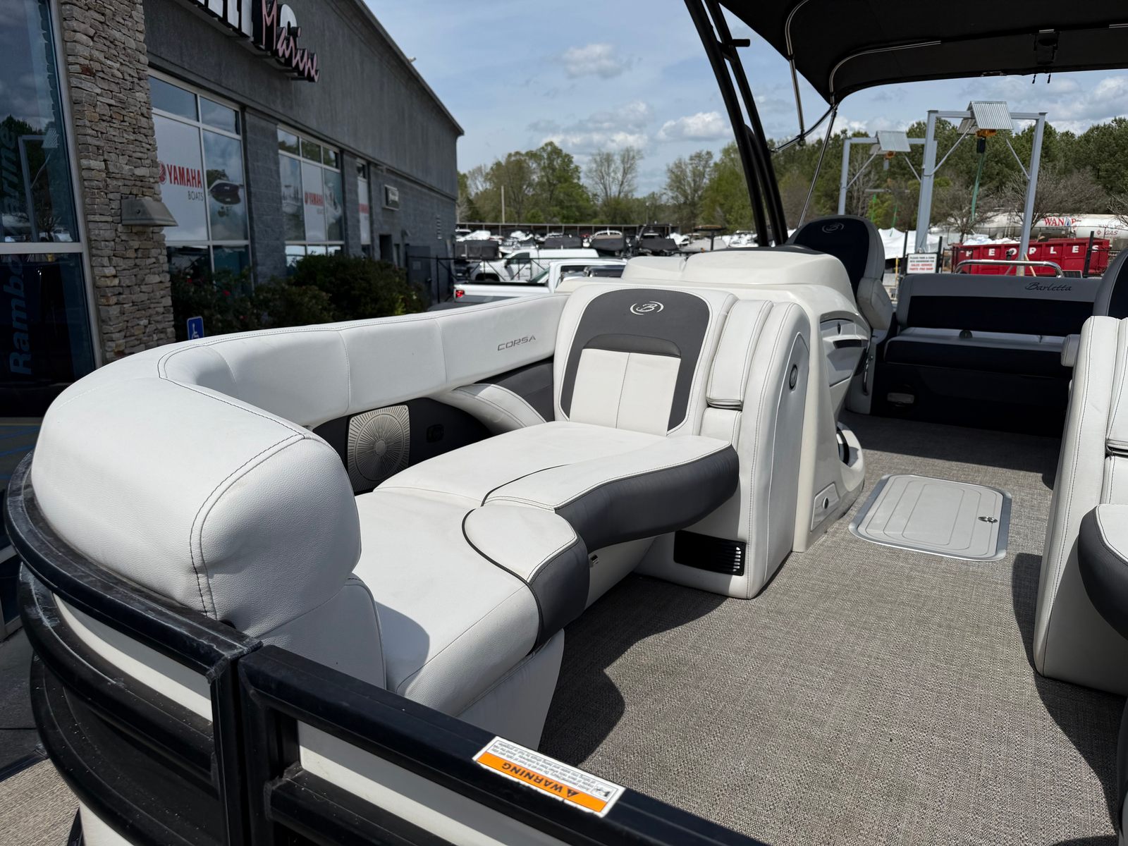 The 2021 Barletta Corsa 23UCA is a 25-foot pontoon that exudes modern style and robust construction. With its sleek lines and contemporary design, this Barletta boat for sale is sure to turn heads at any marina or lakeside gathering. As a used pontoon boat, it offers the perfect balance between value and quality, having been meticulously maintained and boasting only 100 engine hours. The spacious layout ensures ample room for guests, making it ideal for socializing, relaxing, or enjoying a day of water sports.