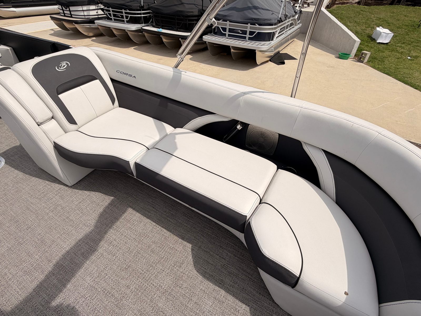 The 2022 Barletta Corsa 25UCA is a 27-foot pontoon boat that stands out for its sleek design, spacious layout, and premium build quality. Barletta is renowned for crafting boats that combine innovative engineering with stylish aesthetics, and the Corsa 25UCA is no exception. With its modern lines and attention to detail, this model is perfect for those who want to make a statement on the water. As a used pontoon boat, it offers exceptional value, allowing you to enjoy the benefits of a top-tier vessel at a competitive price.
