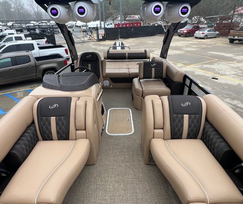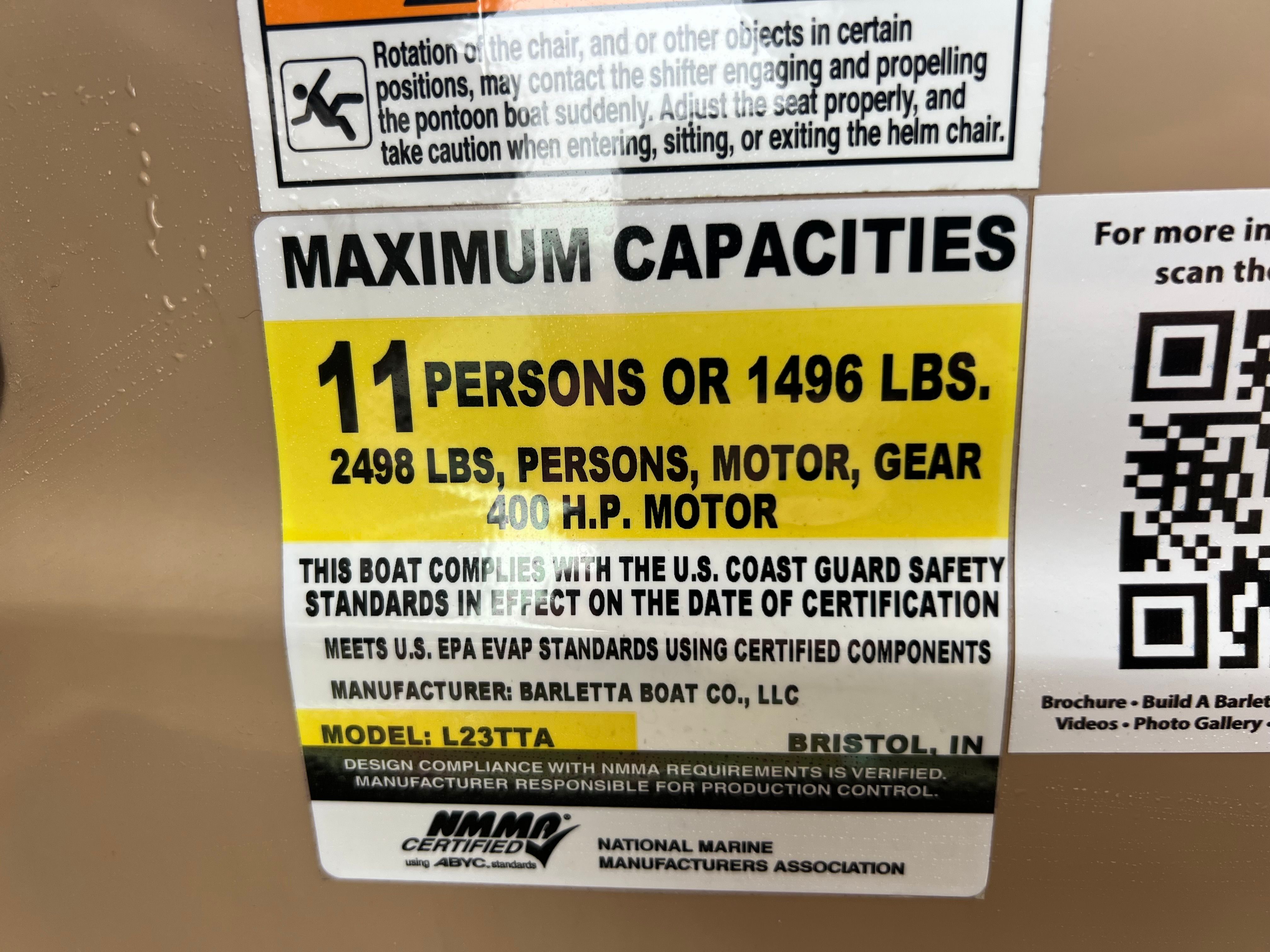 At the heart of the Barletta Lusso L23UA is a powerful single engine delivering an impressive 350 horsepower. This robust engine ensures smooth acceleration, responsive handling, and the ability to glide effortlessly across the water. The Lusso L23UA’s performance capabilities make it ideal for a variety of activities, from leisurely cruises to thrilling water sports. The combination of power and precision allows you to navigate with confidence, whether you are exploring new waterways or docking at your favorite marina.