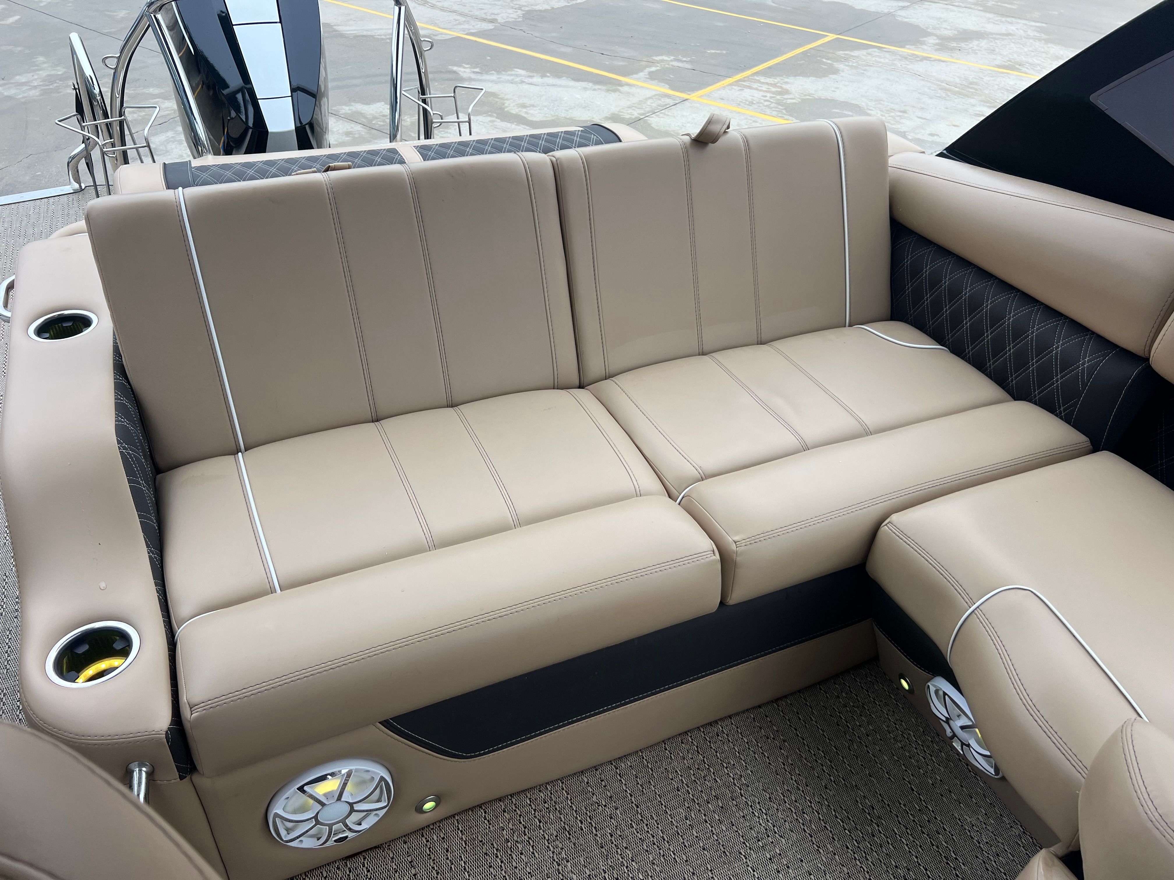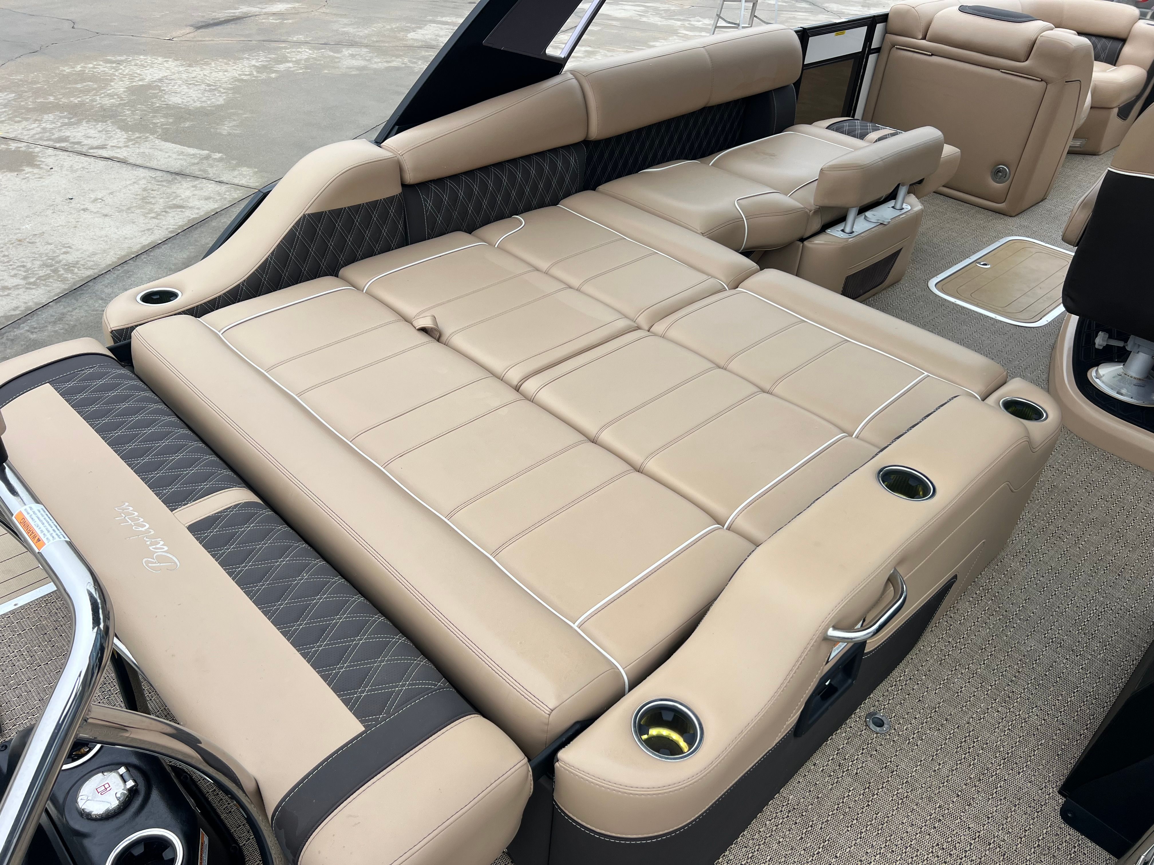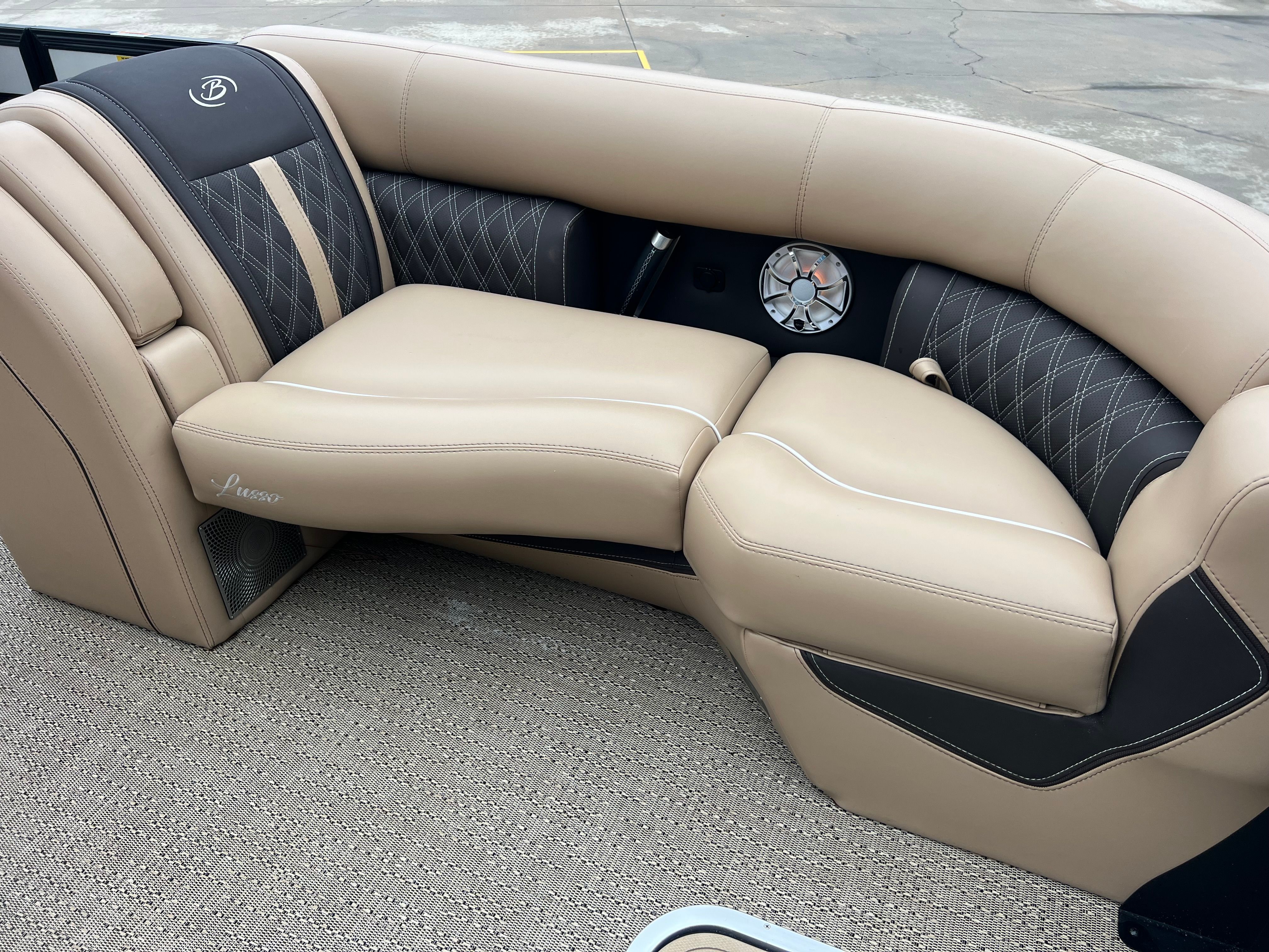 In addition to its recreational appeal, the Barletta Lusso L23UA offers practical benefits that make ownership a pleasure. The intuitive layout and user-friendly controls make docking and maneuvering a breeze, even for those new to boating. The efficient engine delivers impressive performance while helping to optimize fuel usage, so you can spend more time on the water and less time at the pump.Storage is another key advantage of this pontoon boat for sale. The Lusso L23UA is designed with ample storage compartments, allowing you to keep your gear organized and easily accessible. Whether you are packing for a day of fishing, water sports, or a family picnic, you will appreciate the thoughtful storage solutions that keep the deck clutter-free.