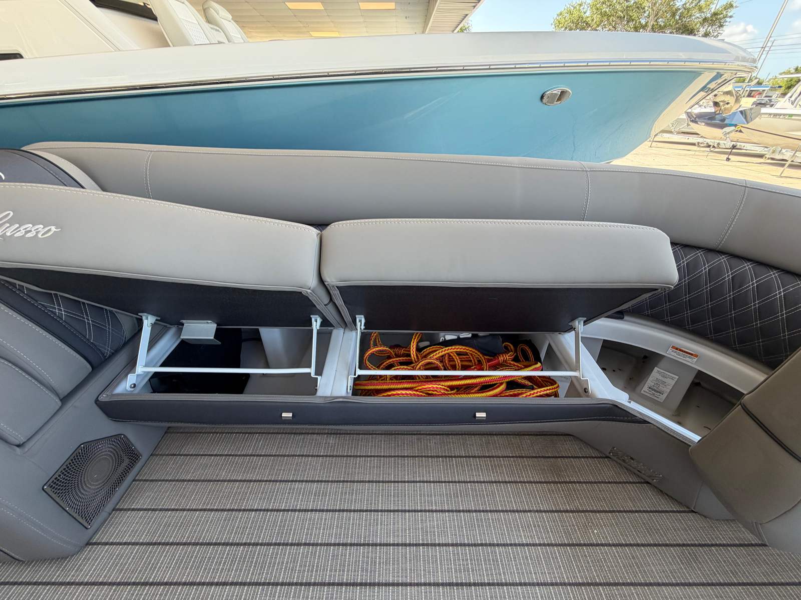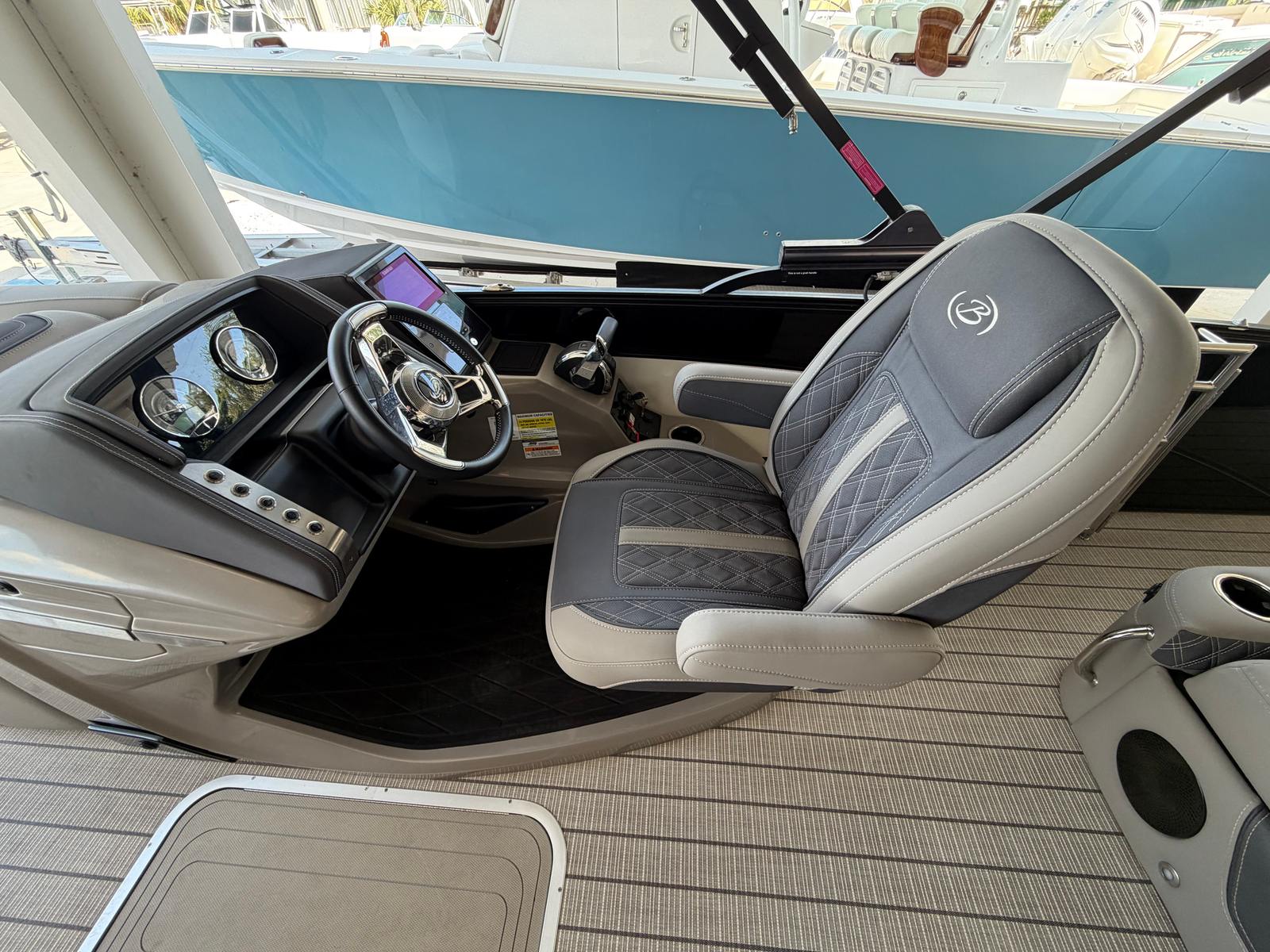 Powering this Barletta Lusso L25UC is a robust 350-horsepower engine, delivering exhilarating acceleration and smooth cruising across lakes, rivers, and coastal waters. With only 7 engine hours, you can enjoy the peace of mind that comes with a lightly used pontoon boat for sale. The single-engine setup ensures straightforward operation and maintenance, making it an ideal choice for both seasoned boaters and those new to the water. Whether you’re towing water toys, exploring new destinations, or simply enjoying a leisurely cruise, the Lusso L25UC’s performance will impress at every turn.
