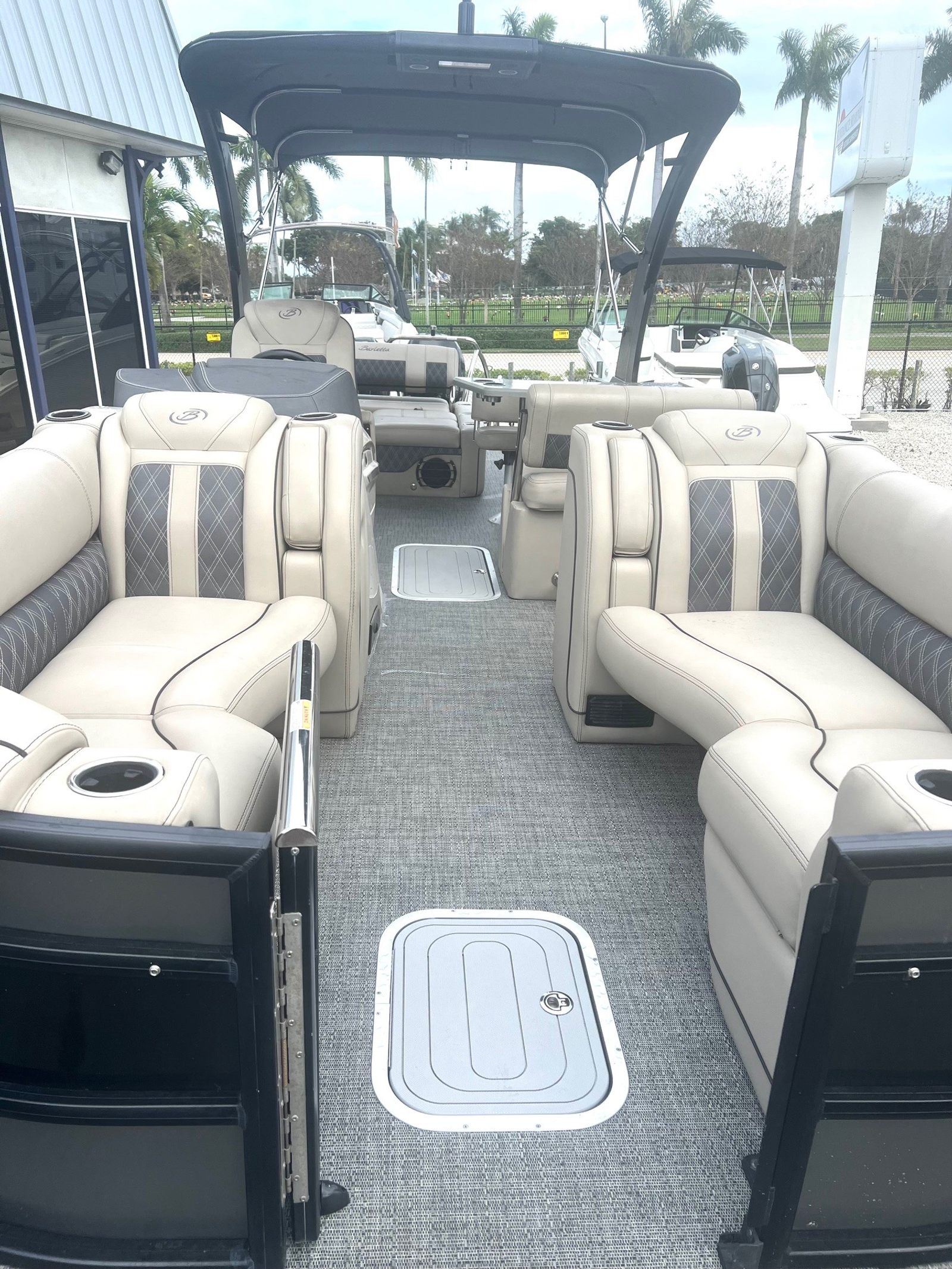 The 2022 Barletta Lusso L25UEA is a 27.5-foot pontoon boat that exudes sophistication and innovation. Designed for those who appreciate the finer things in life, this model combines spaciousness with advanced engineering, ensuring every trip is memorable. Its impressive length provides ample room for family, friends, and all your favorite activities, while the sleek design and premium finishes make it a head-turner at any marina or lake.