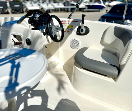 The 2019 Bayliner 16 E deckboat is a compact yet spacious vessel, measuring 16.02 feet in length. Its smart design maximizes every inch, offering ample room for family and friends to relax and enjoy the water. As a used deckboat boat for sale, this model stands out for its well-maintained condition and impressive build quality, making it a fantastic choice for those looking to invest in a reliable and stylish watercraft.Bayliner is renowned for its commitment to quality and innovation, and the 16 E model is no exception. With its sleek lines, modern styling, and practical layout, this deckboat is designed to turn heads at the marina and provide years of enjoyment on lakes, rivers, or coastal waters.