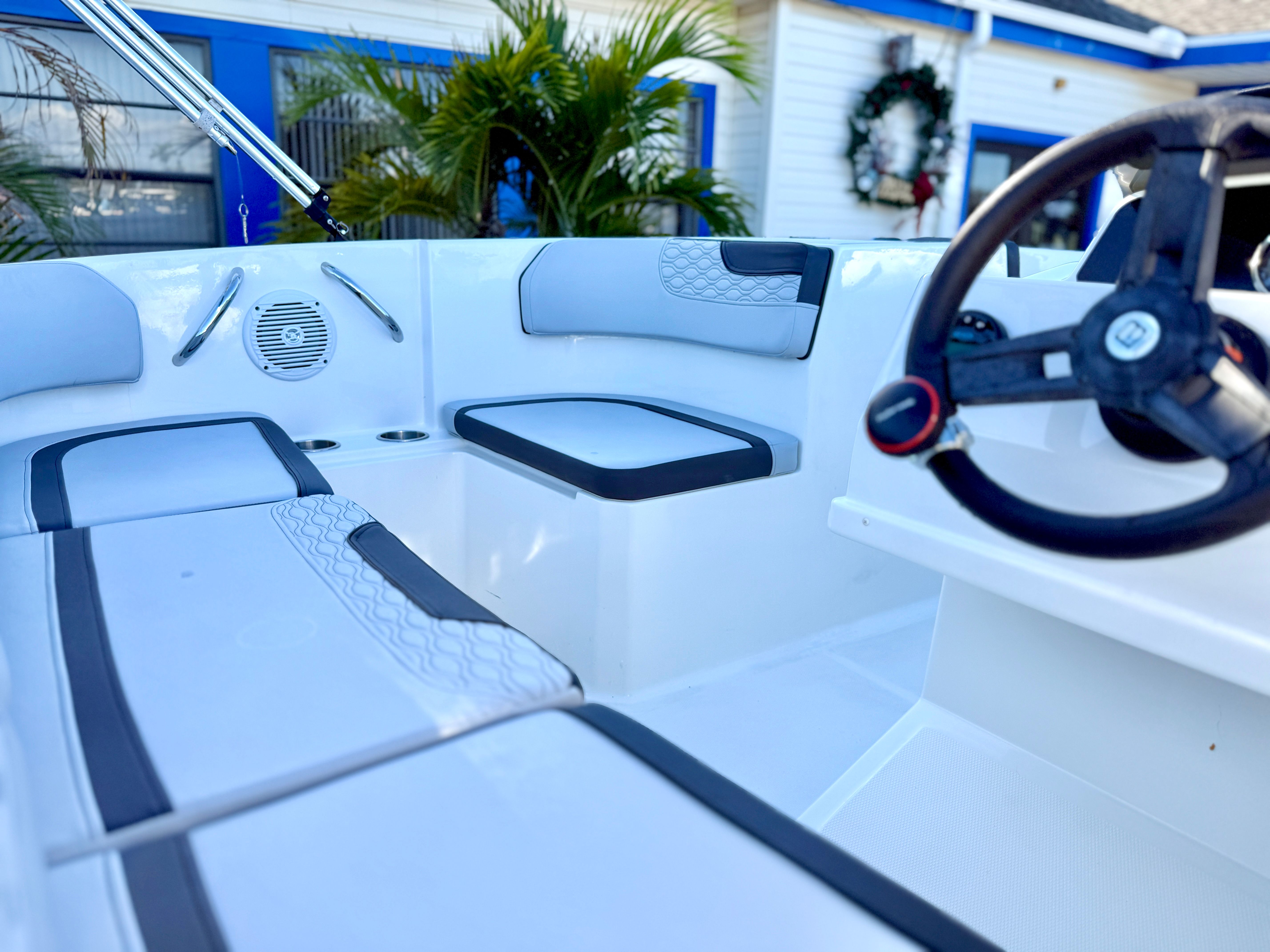 The Bayliner 17 M dual console boat is thoughtfully designed with features that enhance both comfort and utility. The dual console layout provides separate seating areas for the captain and passengers, ensuring everyone enjoys a comfortable ride. The open cockpit design allows for easy movement throughout the boat, making it perfect for socializing, fishing, or relaxing in the sun.This 2023 model’s 17-foot length strikes the perfect balance between spaciousness and ease of handling. The consigned condition means you’re getting a well-maintained vessel that’s ready for immediate adventures. With its modern styling and practical features, the Bayliner 17 M is a standout choice for anyone seeking a dual console boat for sale that’s both stylish and functional.
