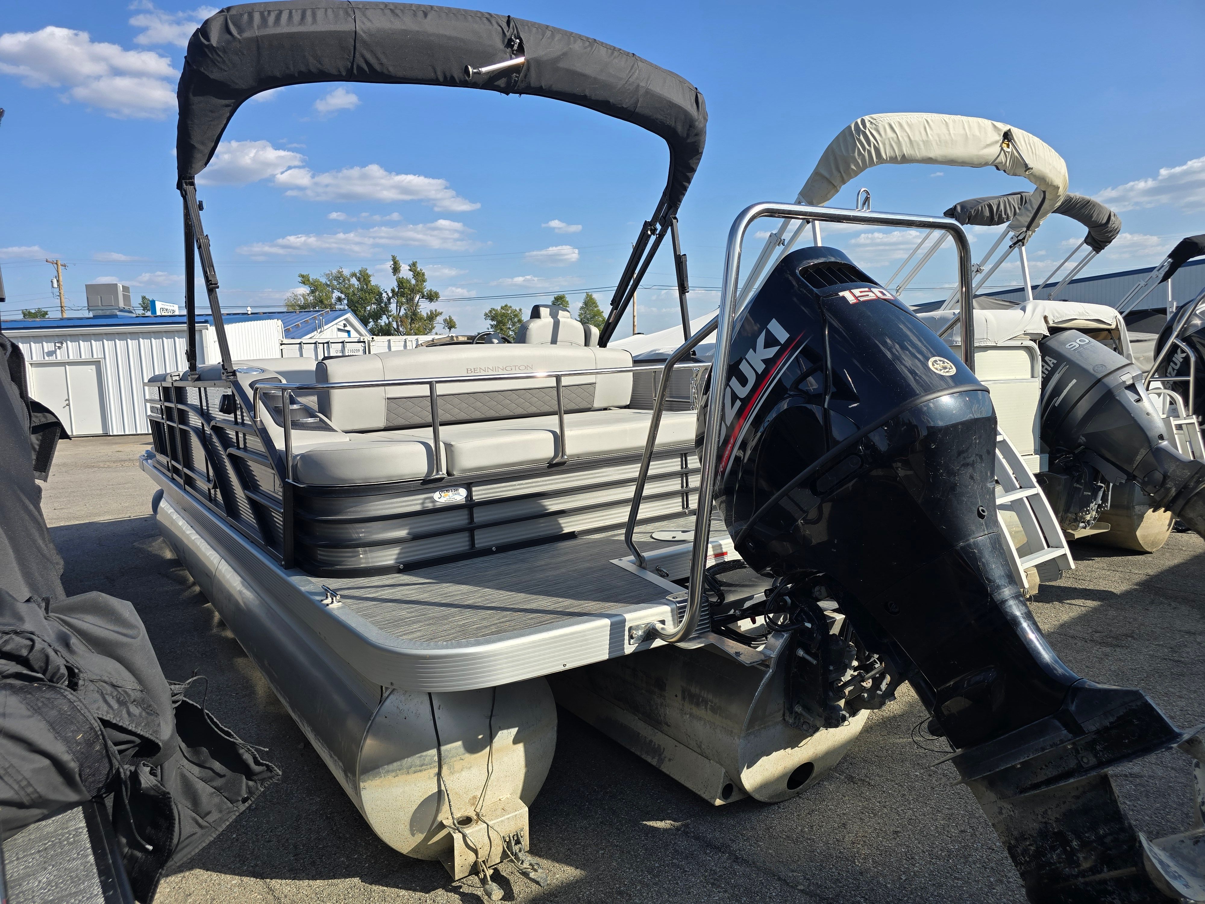 This Bennington pontoon boat for sale is as practical as it is enjoyable. The manageable length makes docking and trailering a breeze, even for those new to boating. The efficient 150-horsepower engine delivers impressive fuel economy, allowing you to spend more time on the water and less time at the pump. With ample storage space for water toys, fishing gear, and picnic supplies, you’ll have everything you need for a full day of adventure. The sturdy construction and reliable engine mean you can focus on making memories, not worrying about maintenance.