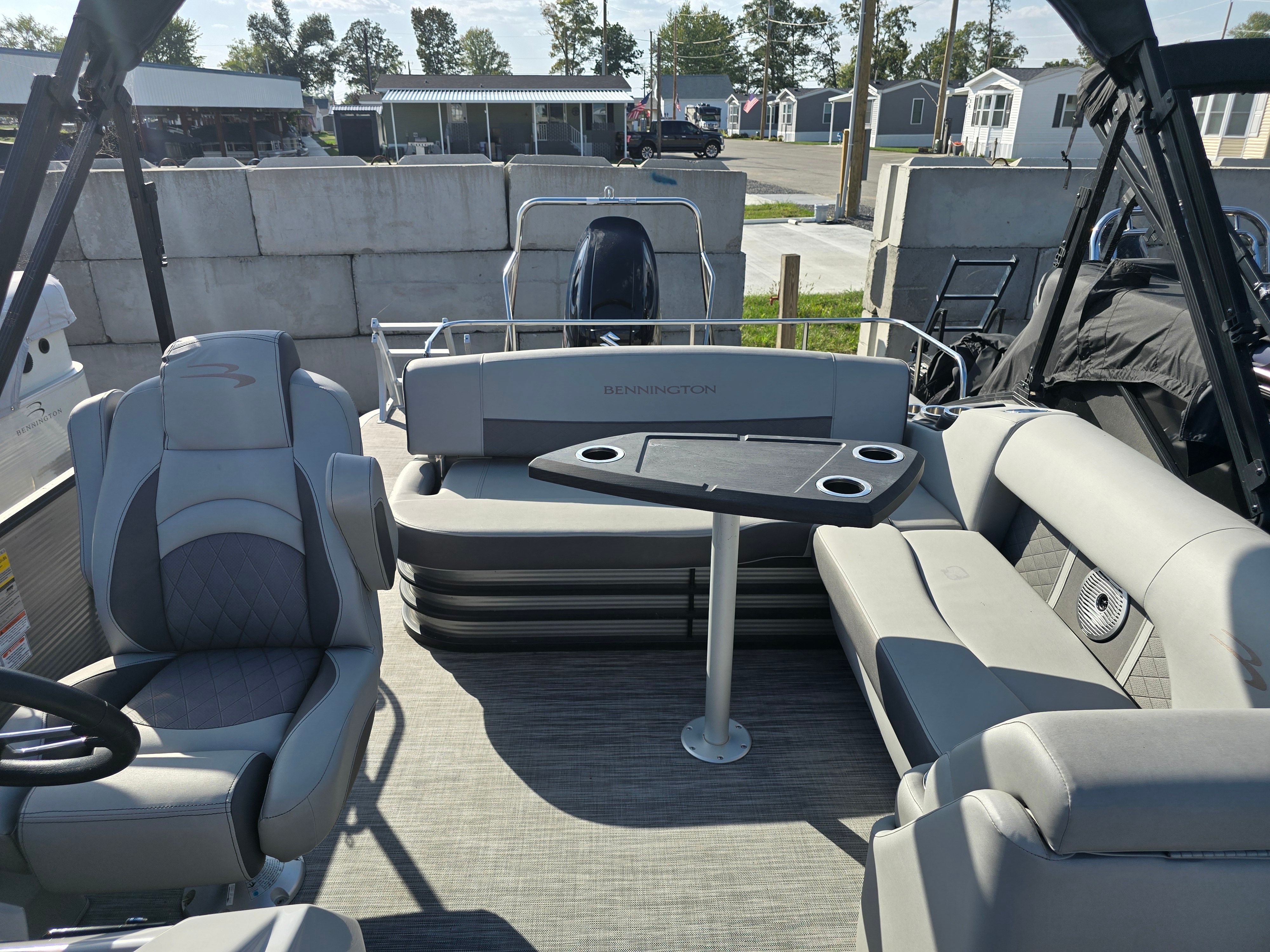 Powering this Bennington 22 LSB is a robust 150-horsepower engine, offering the perfect balance of speed, efficiency, and smooth handling. Whether you’re cruising across the lake, towing water toys, or simply enjoying a leisurely ride, the single-engine setup ensures responsive performance and easy maneuverability. With just 48 hours on the engine, you can be confident in its reliability and longevity, making this pontoon boat for sale an excellent investment for years of worry-free boating.