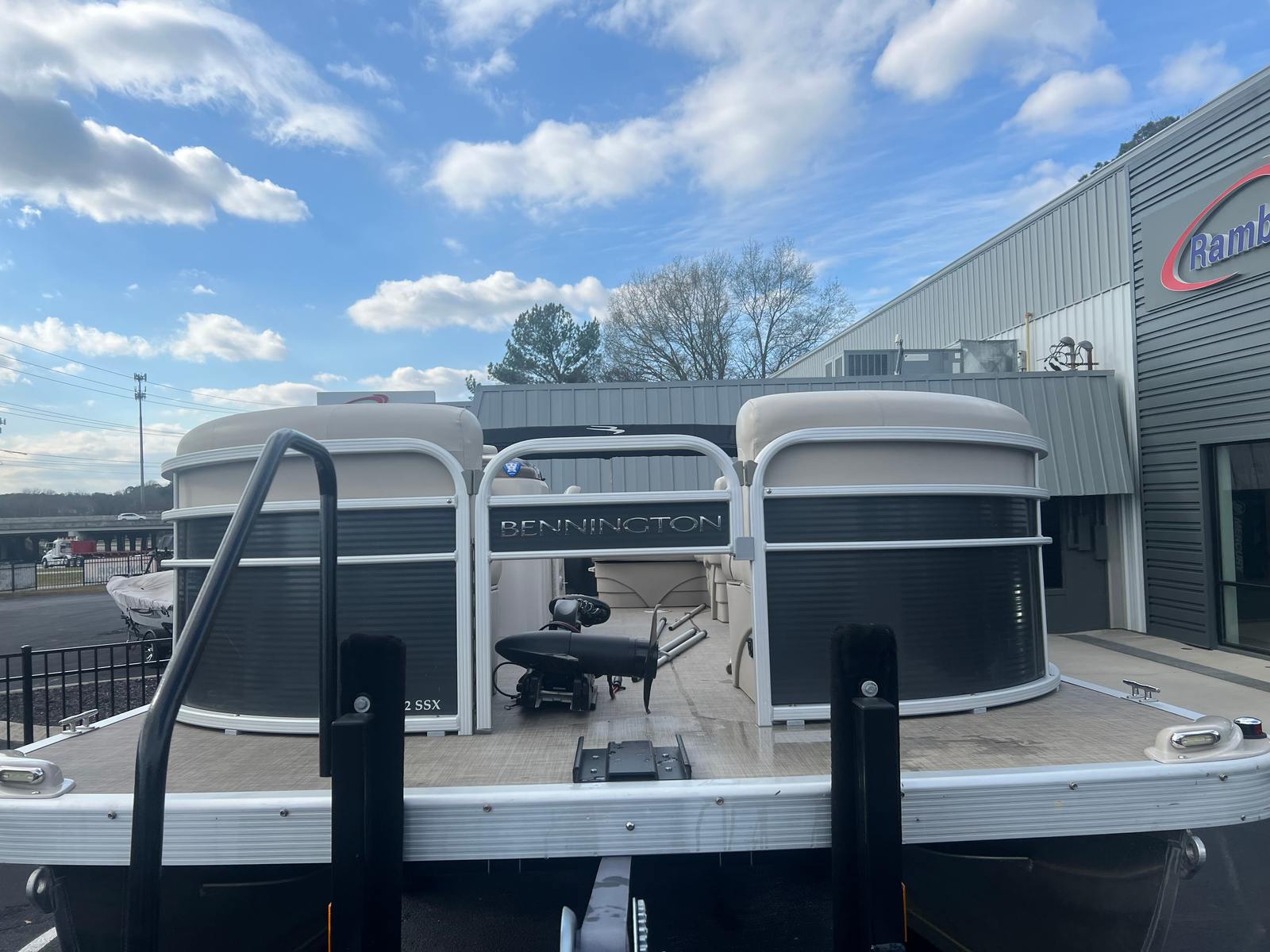 The Bennington 22 SSX is designed with both functionality and luxury in mind. Its spacious deck layout provides plenty of seating options, allowing guests to relax and socialize in comfort. The high-quality construction and attention to detail are evident throughout, from the plush upholstery to the durable flooring. The pontoon’s open design encourages easy movement and interaction, making it perfect for entertaining or simply soaking up the sun.With nearly 23 feet of length, this pontoon boat offers ample space for storage, ensuring that all your gear, water toys, and essentials are conveniently stowed away yet easily accessible. The thoughtful layout maximizes usable space, so you can bring everything you need for a full day of fun on the water. The sturdy pontoons provide excellent stability, giving you peace of mind whether you are anchored for a swim or cruising at speed.