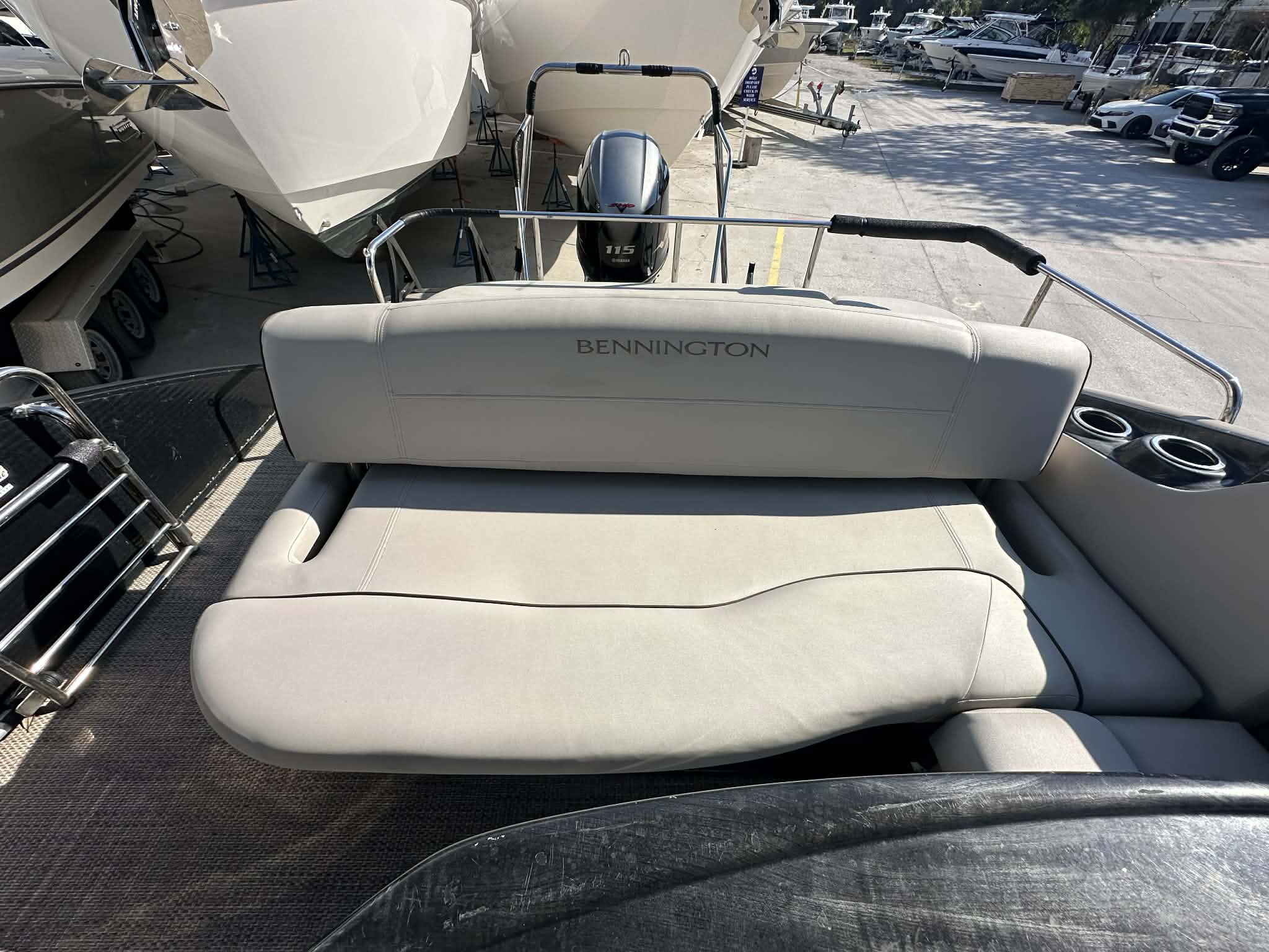 The Bennington 22 SX is renowned for its thoughtful design and attention to detail. The spacious deck layout provides plenty of room for passengers to move about comfortably, making it perfect for entertaining or relaxing. The high-quality construction and durable materials ensure that this pontoon boat remains in excellent condition, even after years of use. The seating is plush and ergonomically designed, offering maximum comfort during long days on the water. Storage compartments are strategically placed throughout the boat, allowing you to keep your gear organized and easily accessible.