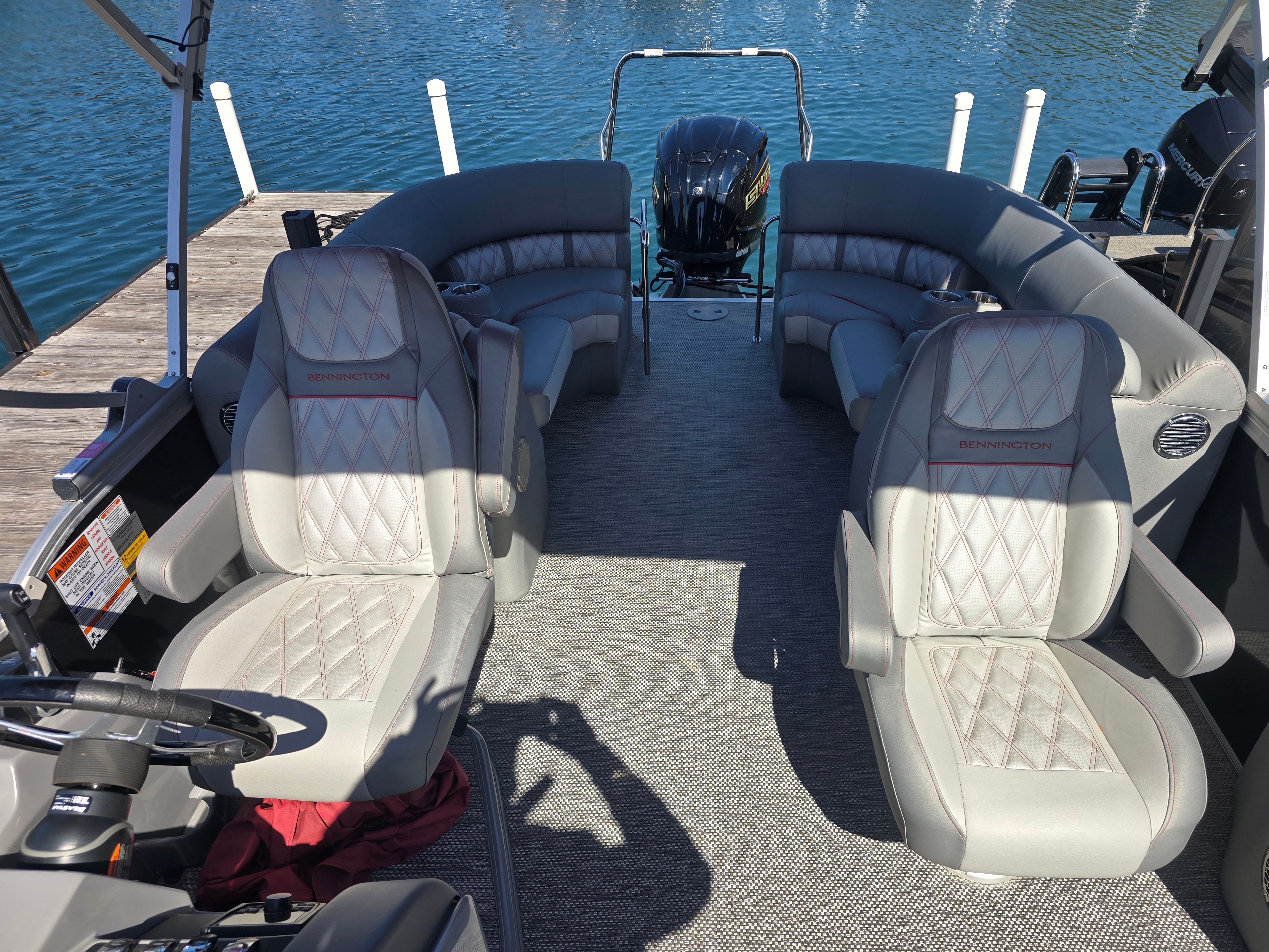 Powering this Bennington pontoon is a robust 250-horsepower engine, delivering impressive acceleration and smooth cruising capabilities. With only 100 engine hours, the motor is in excellent condition, promising reliability and plenty of life for future adventures. Whether you’re gliding across calm waters or picking up speed for watersports, the 23 Lxsfb’s performance is both exhilarating and efficient. The single-engine setup simplifies maintenance and maximizes fuel efficiency, making every outing enjoyable and worry-free.