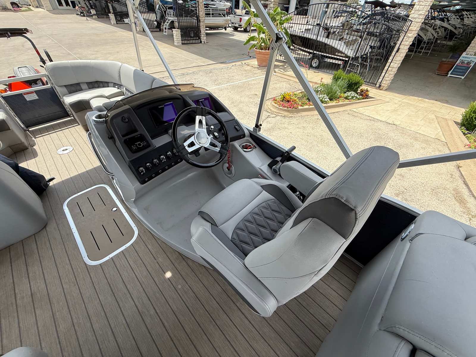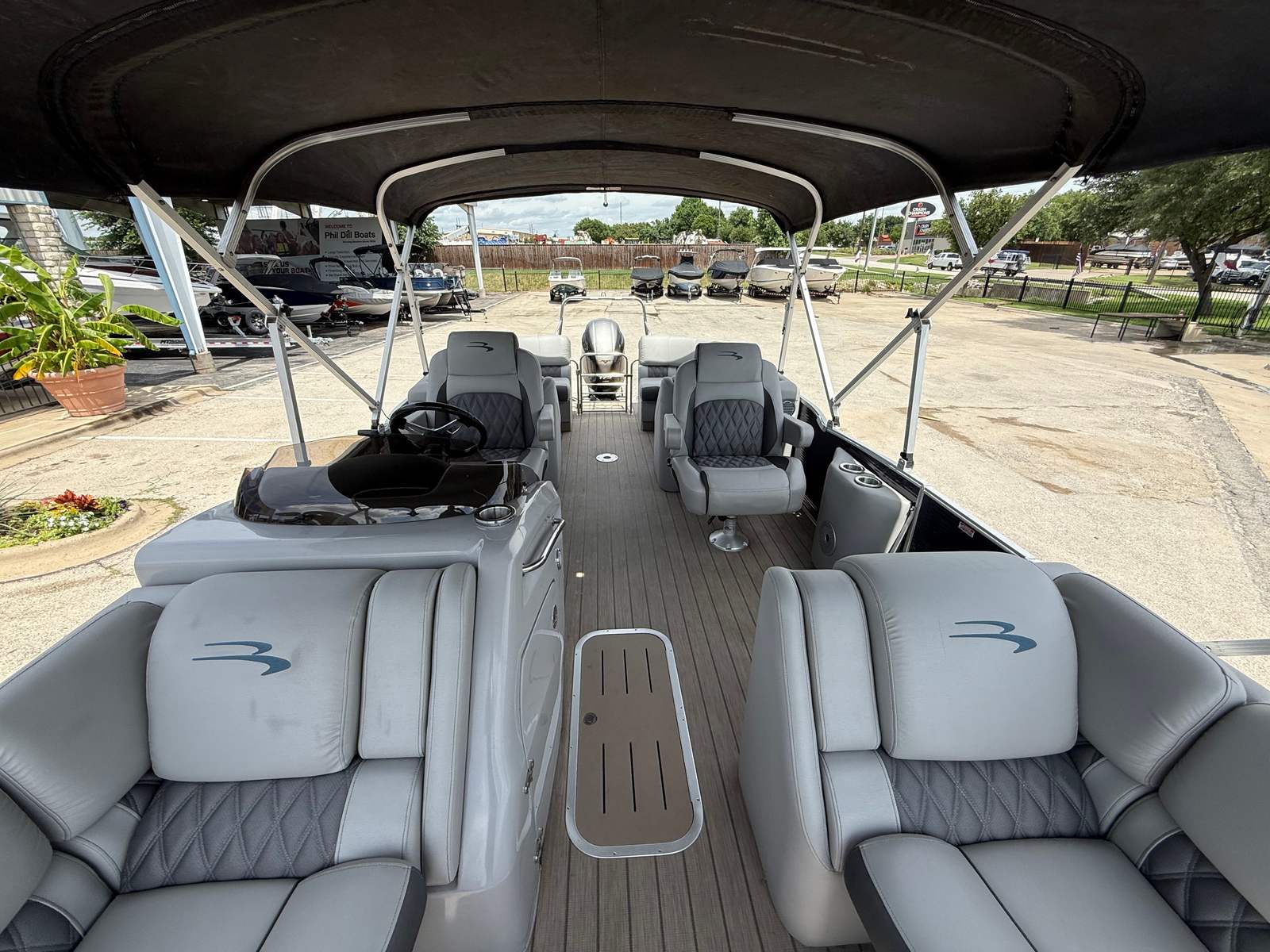 The Bennington 23 RFB is packed with features that enhance your time on the water. Its spacious deck layout provides plenty of room for guests to move around comfortably, while the plush seating invites you to relax and unwind. The thoughtful design ensures that every inch of space is utilized efficiently, offering both style and functionality. The pontoon’s durable construction and high-quality materials are evident throughout, reflecting Bennington’s reputation for building boats that stand the test of time.This model’s special features are designed to maximize your enjoyment and convenience. The 23-foot length allows for generous seating and open areas, making it easy to host gatherings or simply stretch out and soak up the sun. The helm is ergonomically designed for ease of use, giving the captain full control and confidence while navigating. Storage compartments are strategically placed to keep your gear organized and out of the way, ensuring a clutter-free environment.