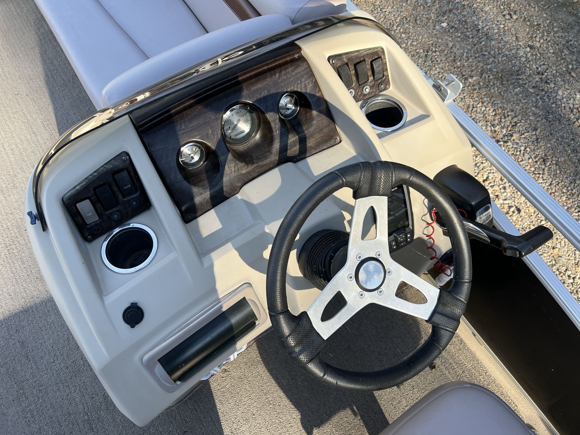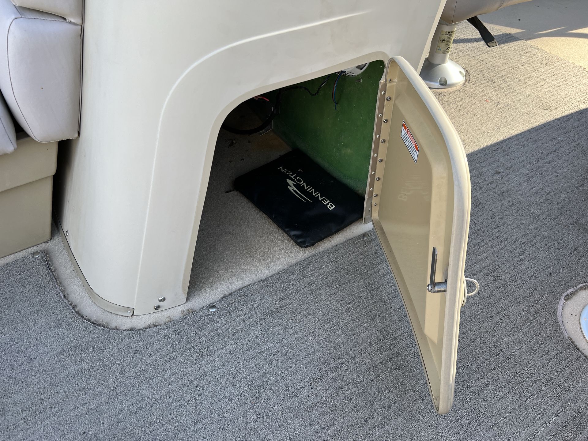 Powering the Bennington 24 SSL is a single engine with an impressive 115 horsepower, offering a smooth and responsive ride for all your aquatic adventures. With only 194 engine hours, this pontoon boat for sale has plenty of life left, ensuring dependable performance for seasons to come. The engine’s robust output makes it easy to cruise at comfortable speeds, tow water toys, or reach your favorite fishing spot with ease. Whether you’re gliding across calm waters or navigating busier channels, the 24 SSL’s performance capabilities provide confidence and control, allowing you to focus on enjoying the journey.