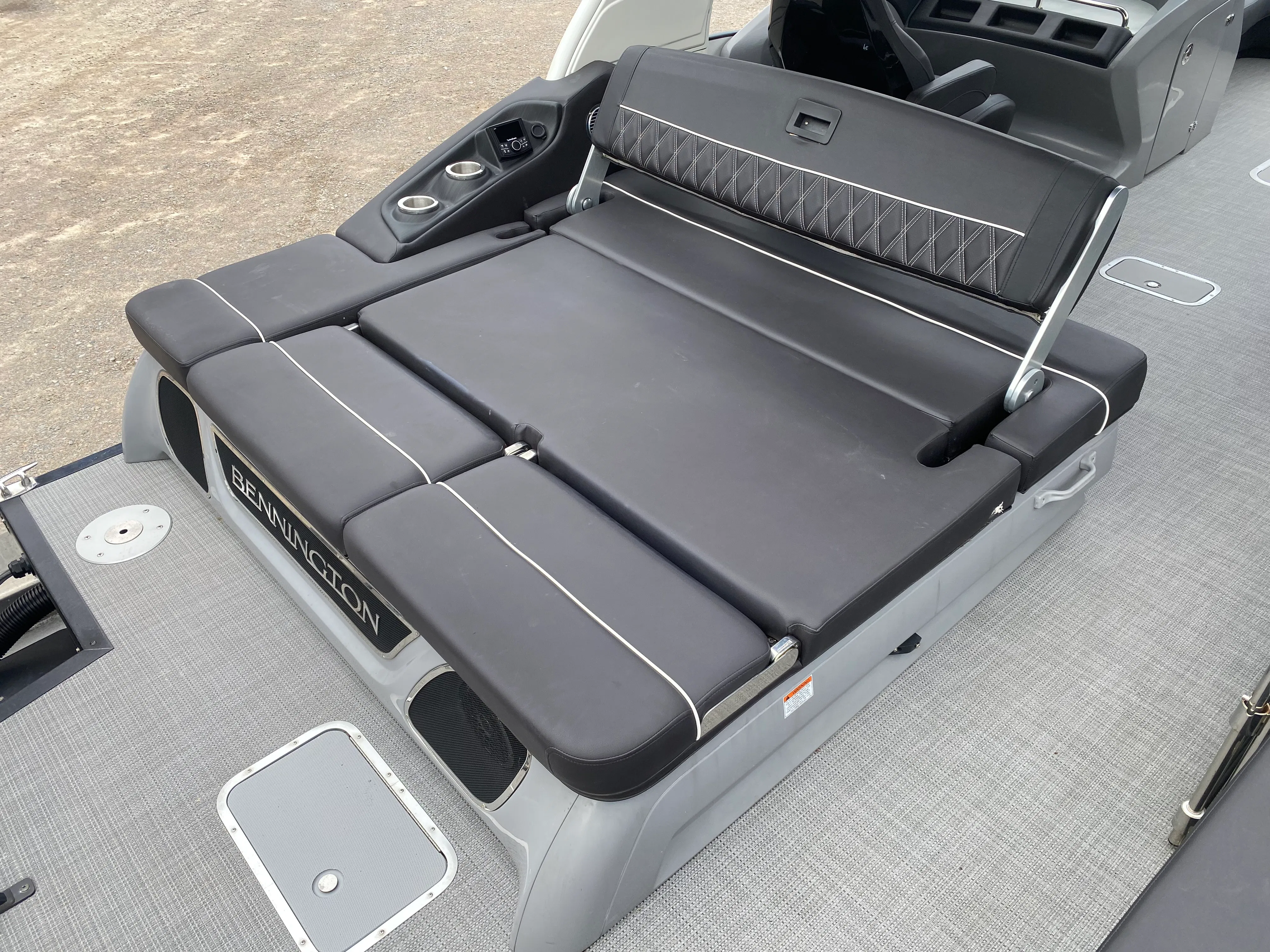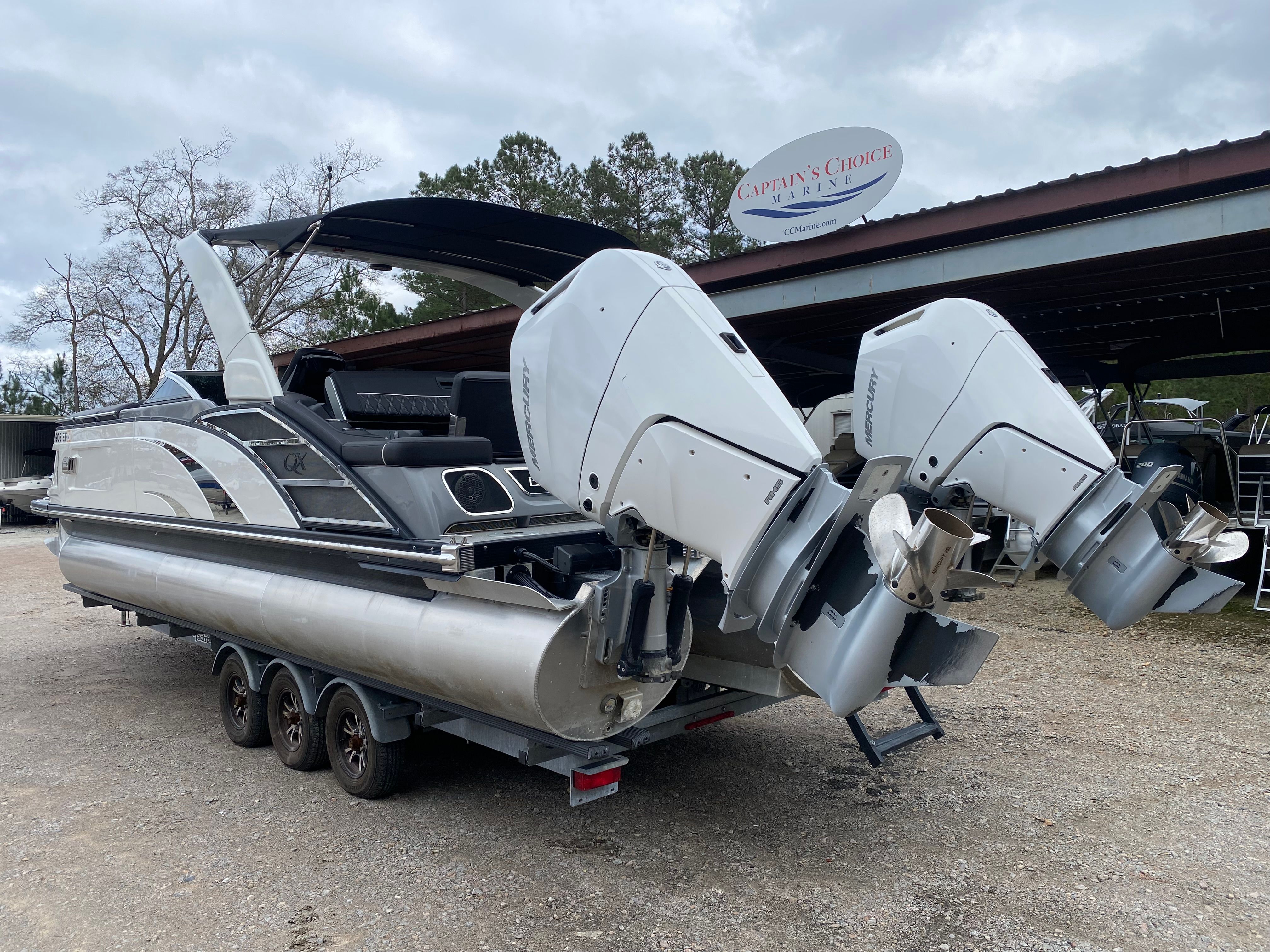 Equipped with dual engines boasting a combined 800 horsepower, the Bennington 27 QX pontoon boat sets a new standard for speed and agility on the water. Whether you’re cruising across the lake or towing water toys, this pontoon’s powerful setup ensures smooth acceleration and responsive handling. The twin-engine configuration not only provides exhilarating performance but also enhances maneuverability, making docking and navigating tight spaces effortless. With this much horsepower at your fingertips, you’ll enjoy thrilling rides and the confidence to explore new waters with ease.