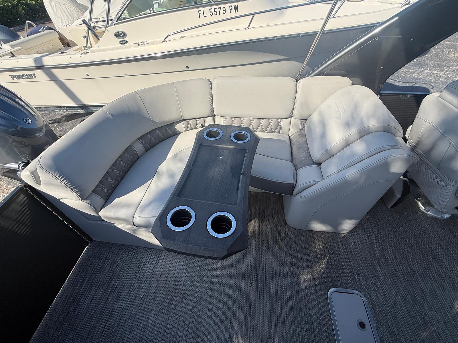 This Bennington boat for sale is packed with features designed to elevate your boating experience. The spacious deck layout provides plenty of room for guests to relax, socialize, and soak up the sun. The high-quality construction and premium materials ensure durability and comfort, while the innovative design maximizes both style and functionality. The 27.83-foot length offers generous seating and open spaces, perfect for hosting gatherings or enjoying quiet moments on the water. The twin engines provide not only impressive power but also redundancy for added peace of mind during longer excursions.