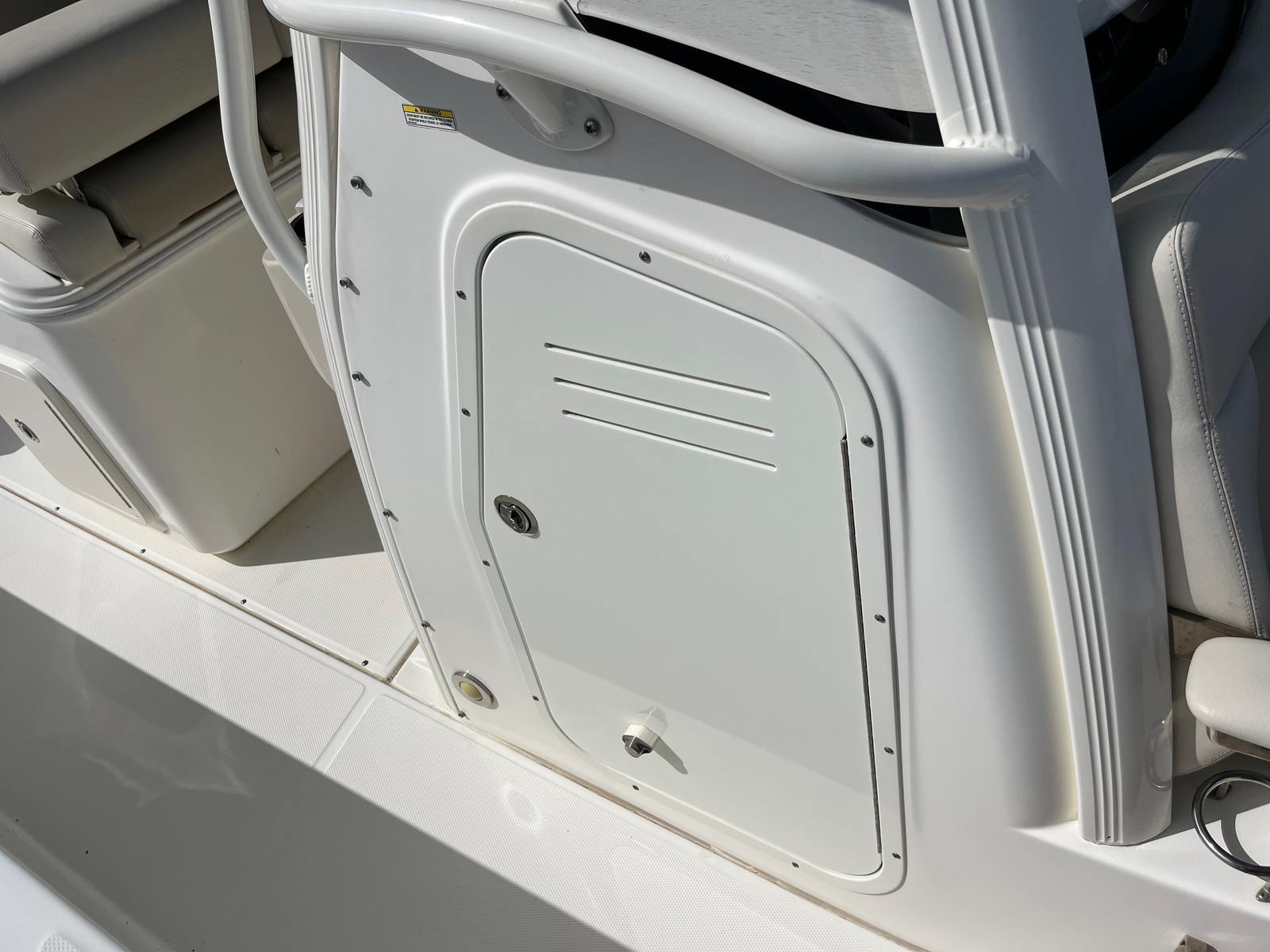 Step aboard and you’ll immediately notice the thoughtful layout and spacious seating throughout. The bow features comfortable lounge seating perfect for relaxing or entertaining, while the aft cockpit provides plenty of room for fishing or socializing. A large center console with head compartment adds convenience for full days on the water. In Add in the already installed, much desired, powerpole SHALLOW WATER ANCHOR and you have the complete package.