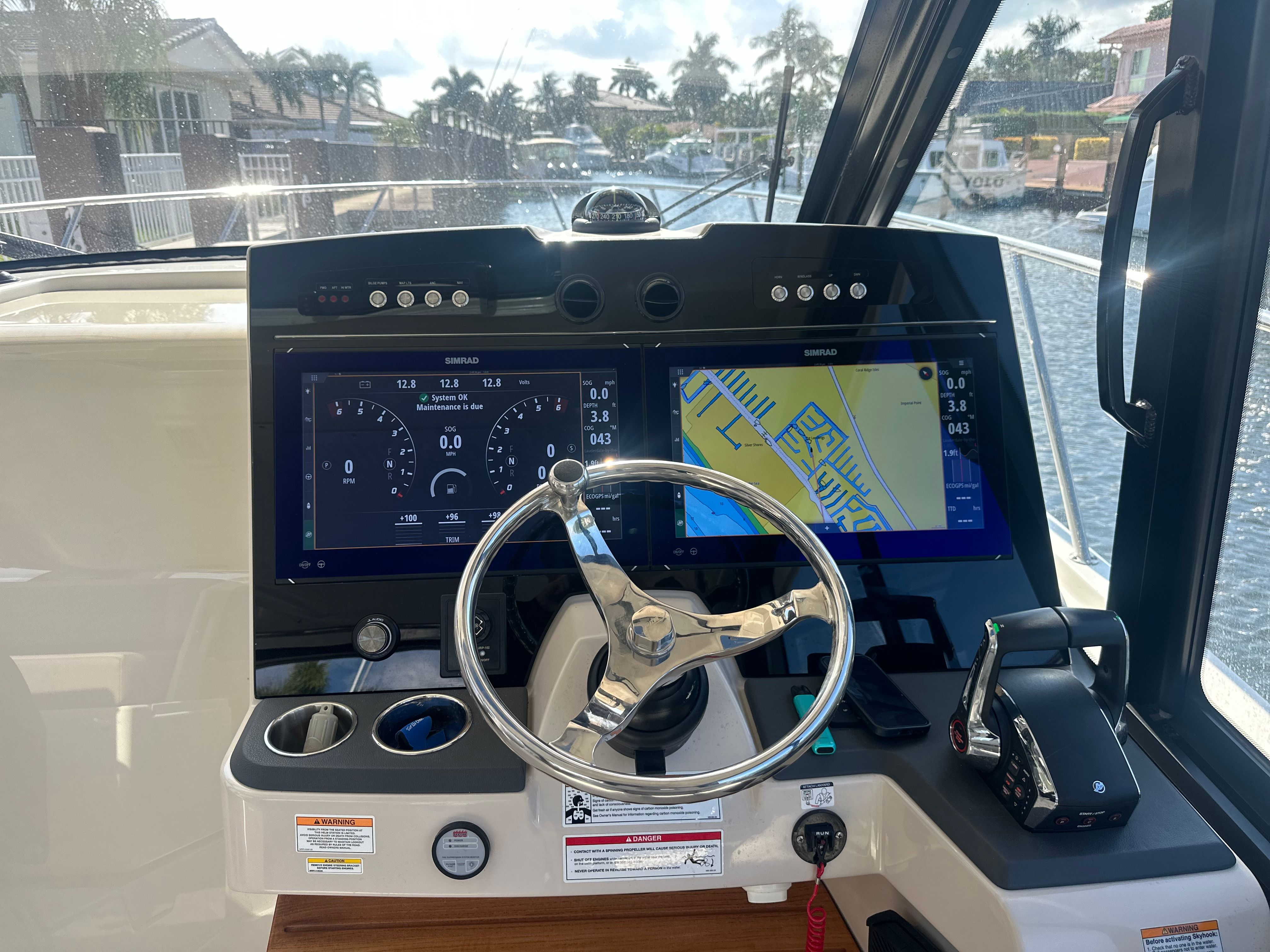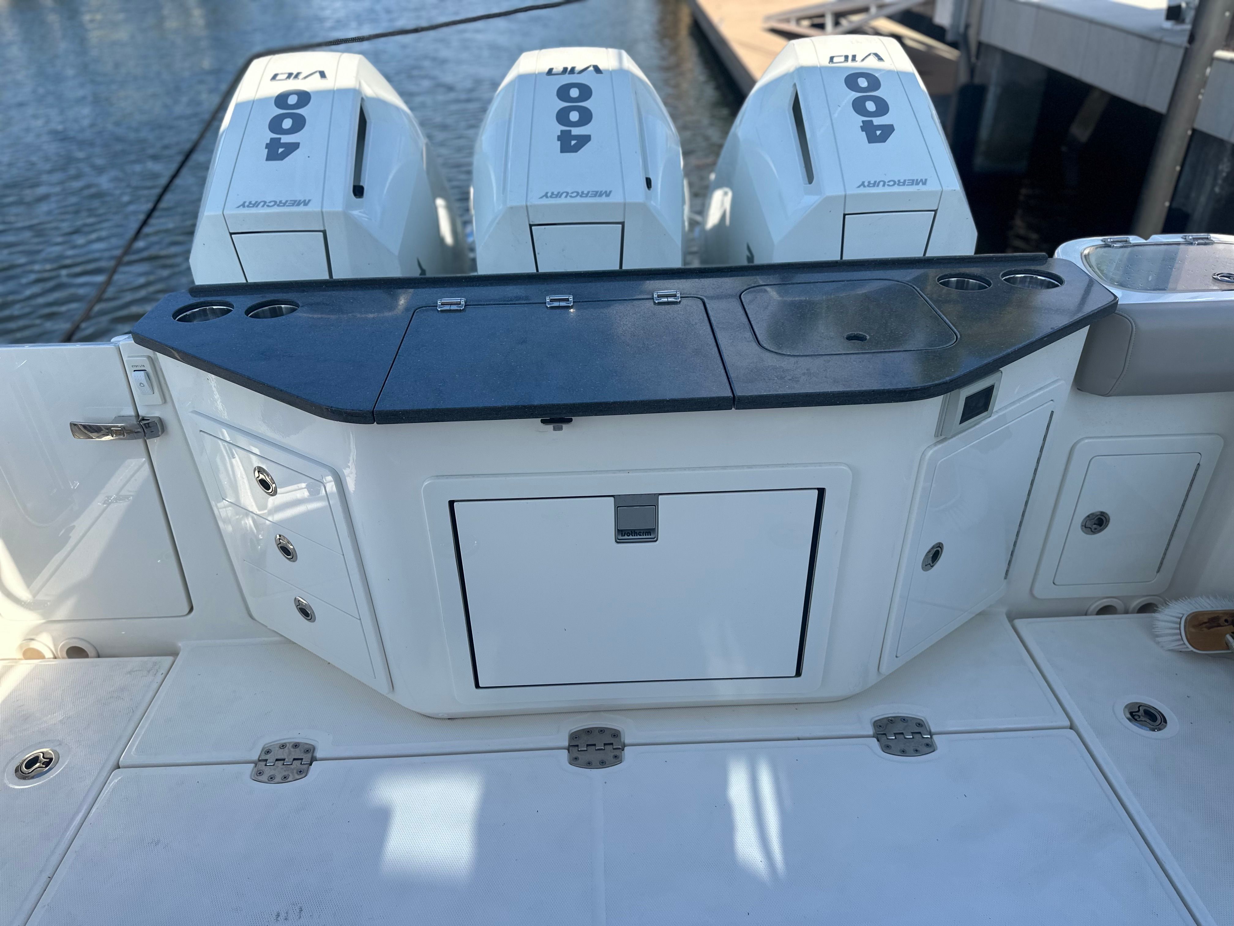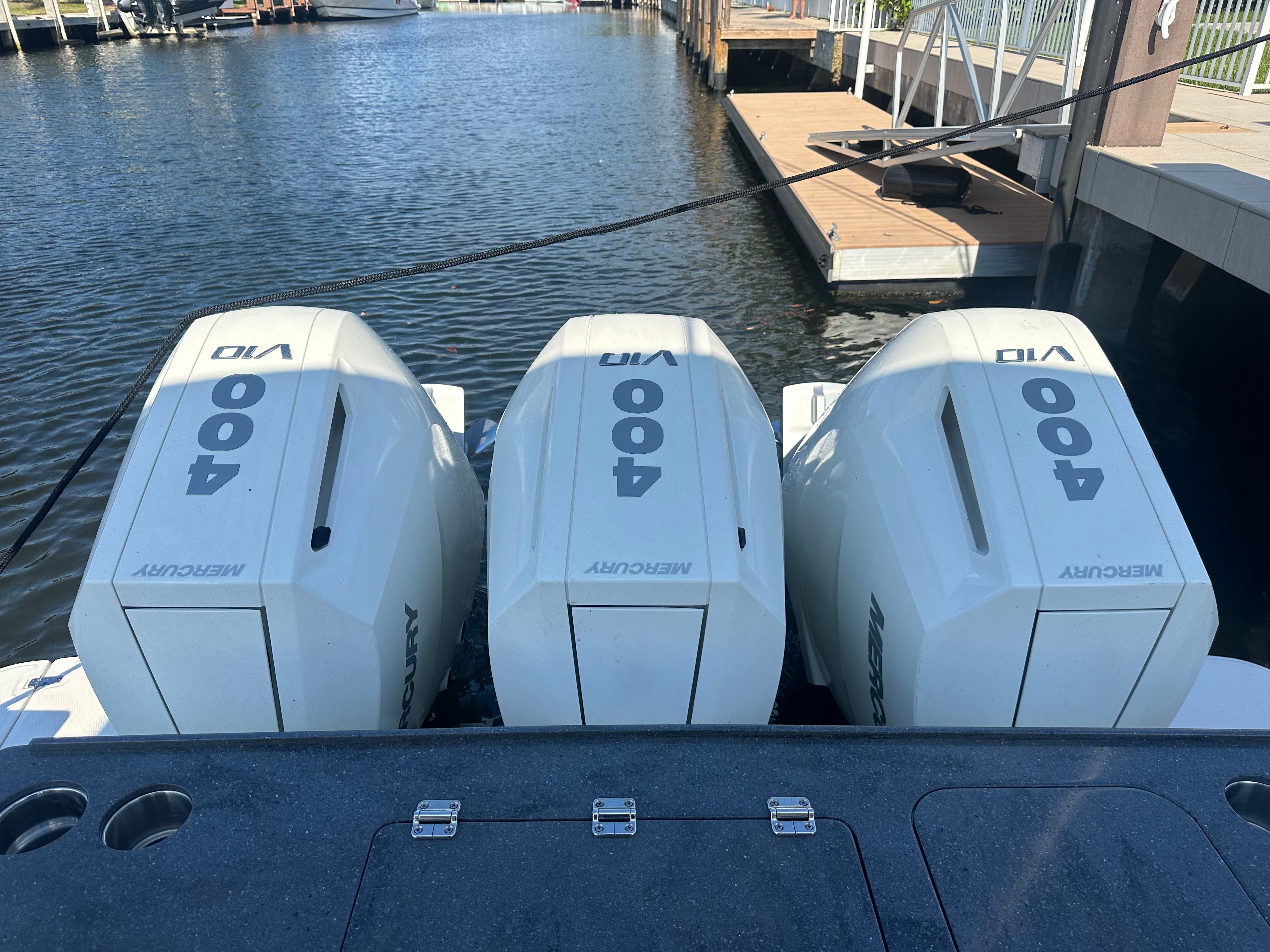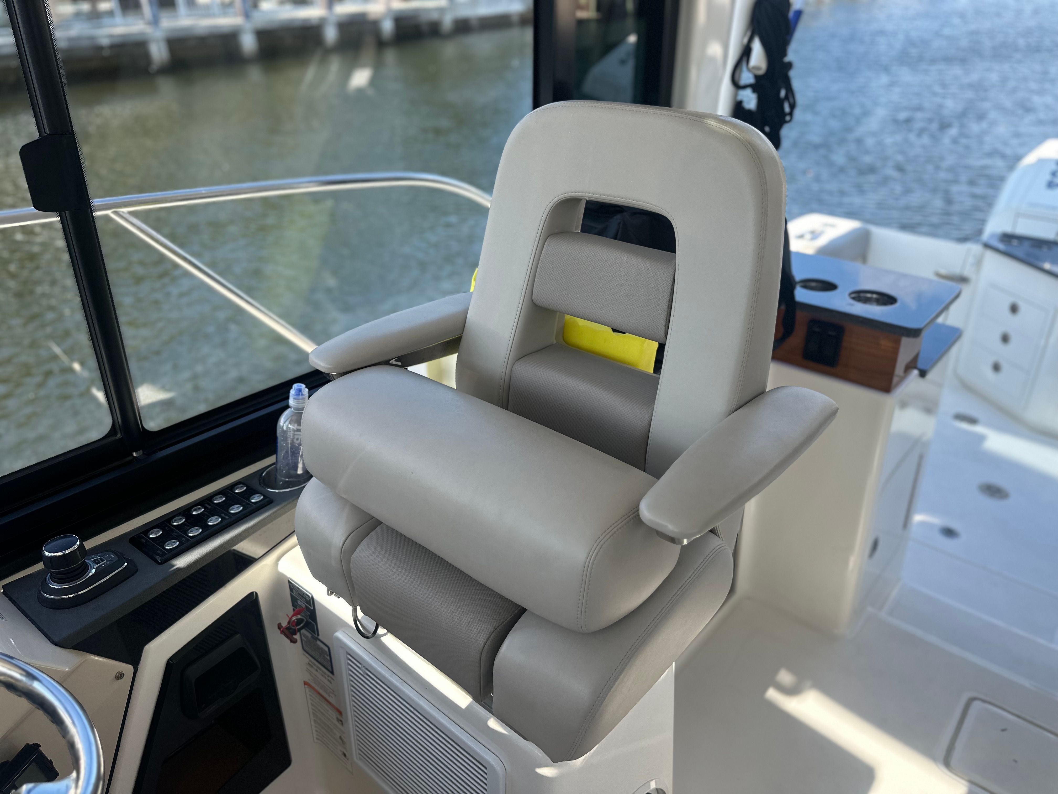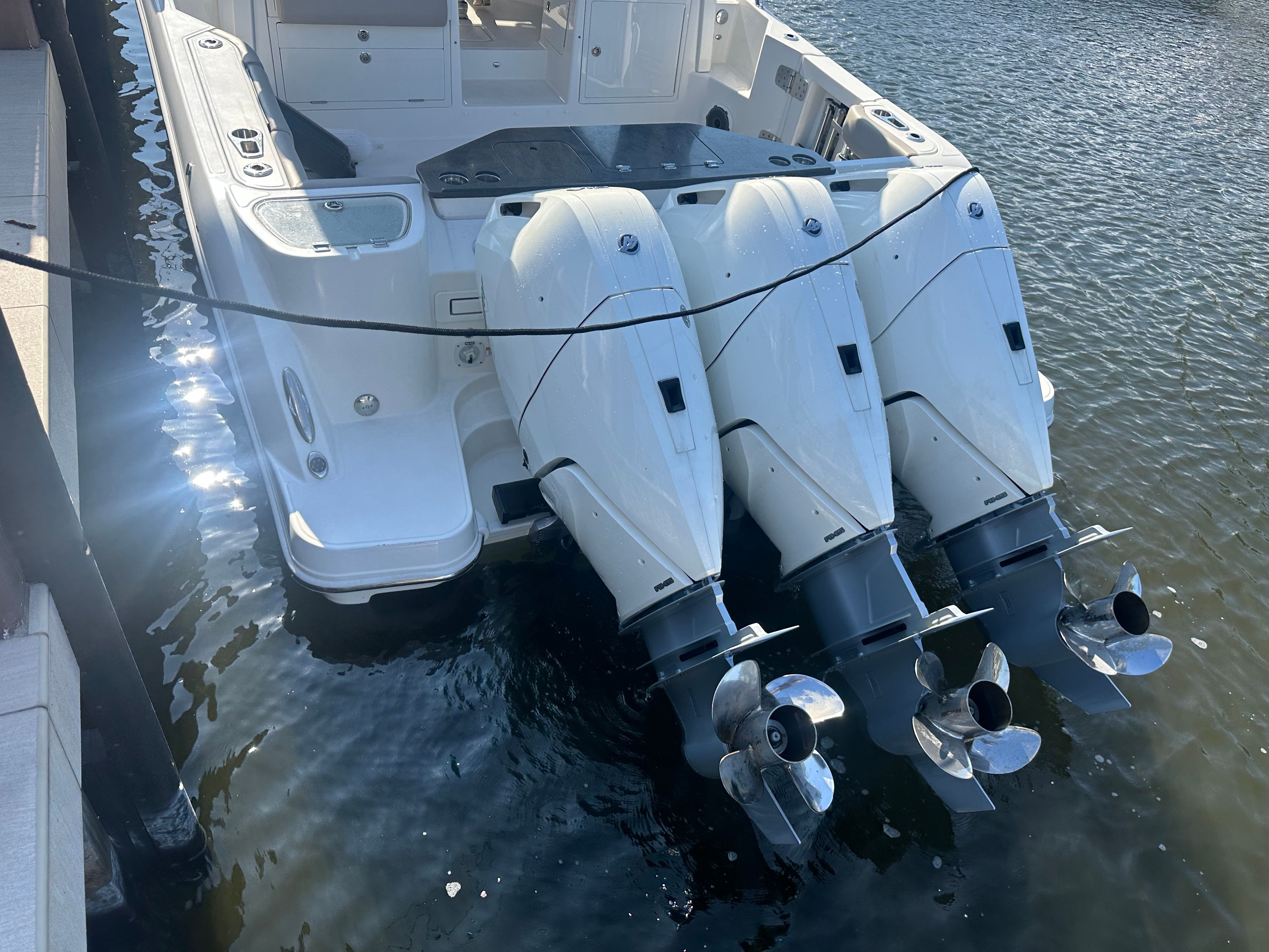 Powering the Boston Whaler 365 Conquest are three robust engines, delivering a combined 1200 horsepower for exhilarating speed and responsive handling. Whether you’re navigating coastal waters, exploring hidden coves, or heading offshore for a day of fishing, this Dual Console boat for sale offers the muscle and reliability you need. The triple-engine setup ensures smooth acceleration and impressive top-end performance, while also providing the confidence to tackle a variety of water conditions. With only 104 engine hours, these engines have plenty of life left, promising many seasons of worry-free boating.