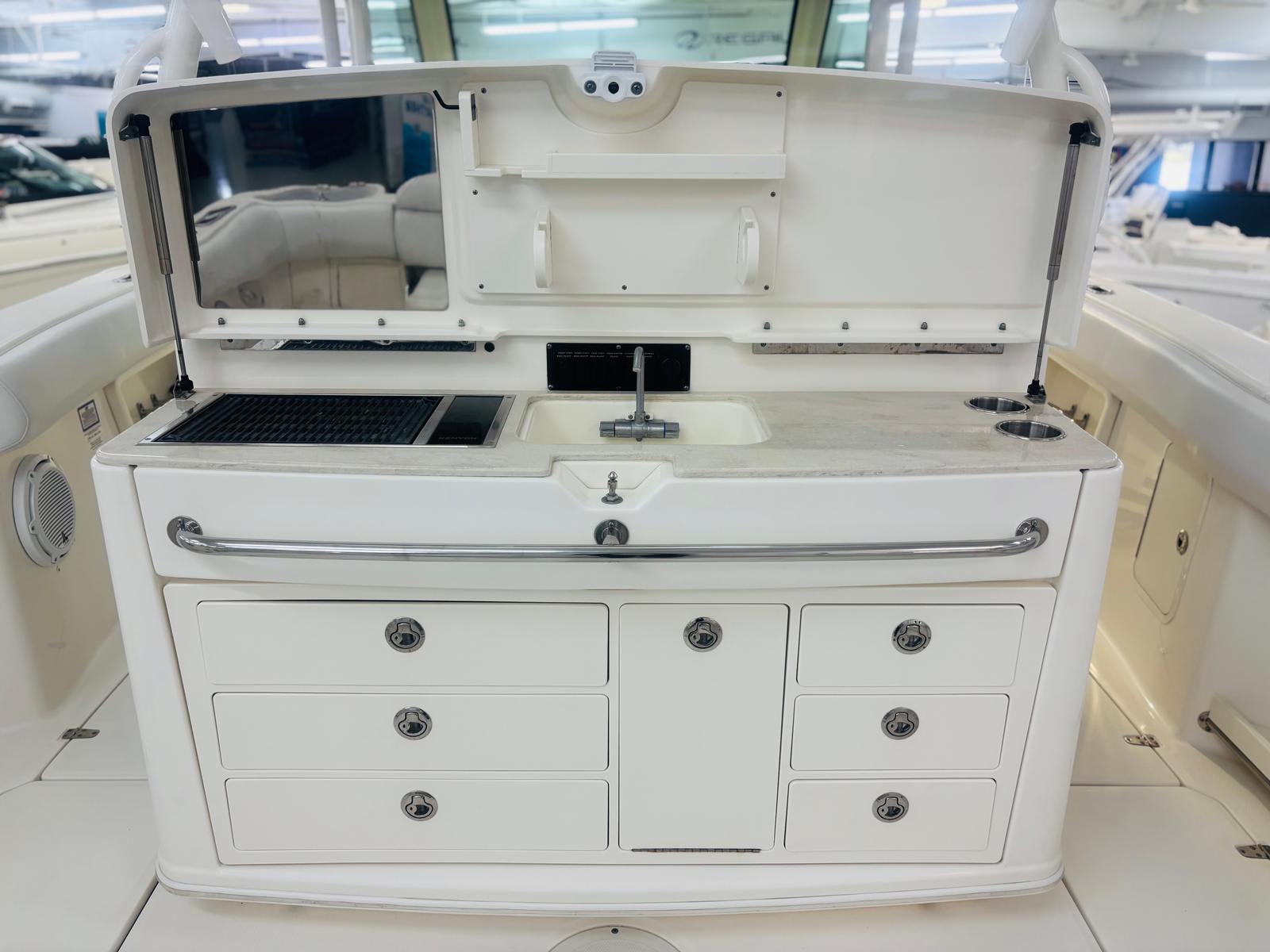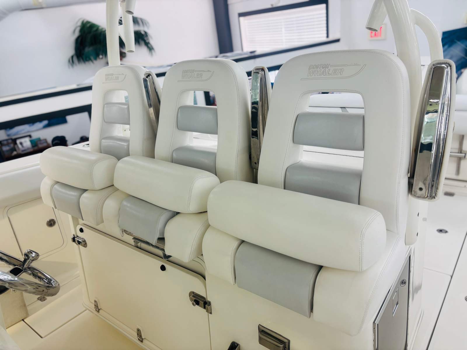 This center console boat for sale is not only about performance and fun; it also excels in practicality. The Boston Whaler 370 Outrage is designed for ease of use, featuring intuitive controls and a layout that simplifies navigation and operation. Storage space is thoughtfully integrated, providing ample room for all your essentials, from fishing tackle to personal belongings. This makes it easy to keep your gear organized and accessible, enhancing your overall boating experience.