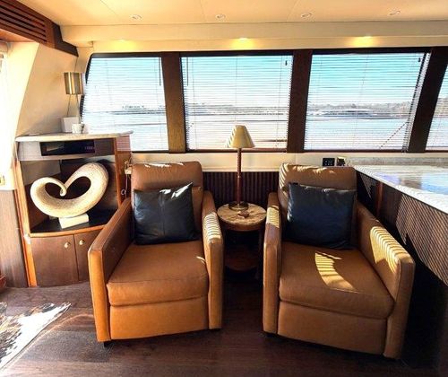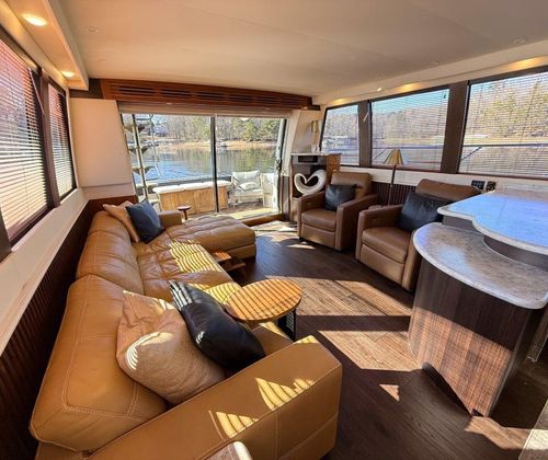 Below deck, the yacht features a three-stateroom layout, generous pilothouse seating, and a full-beam master suite, making her ideal for extended cruising or luxury liveaboard use. Her previous owner brought her down from Tennessee, and she currently resides under cover on Lake Lanier, preserving her freshwater condition.