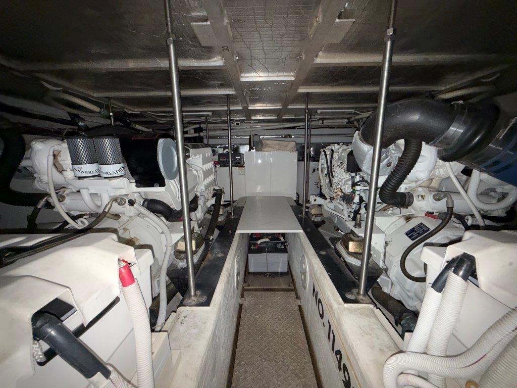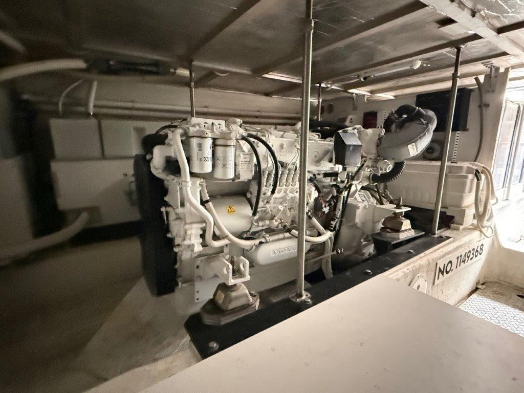Powered by twin Volvo TAMD74P-D diesel engines (480 HP each) with just over 600 hours, “Ricky Bobby” has been fully serviced by a local mechanic, with service records available. The Onan 12.5kW generator shows 740 hours and runs smoothly. The engine room is exceptionally clean and offers easy access to all systems.