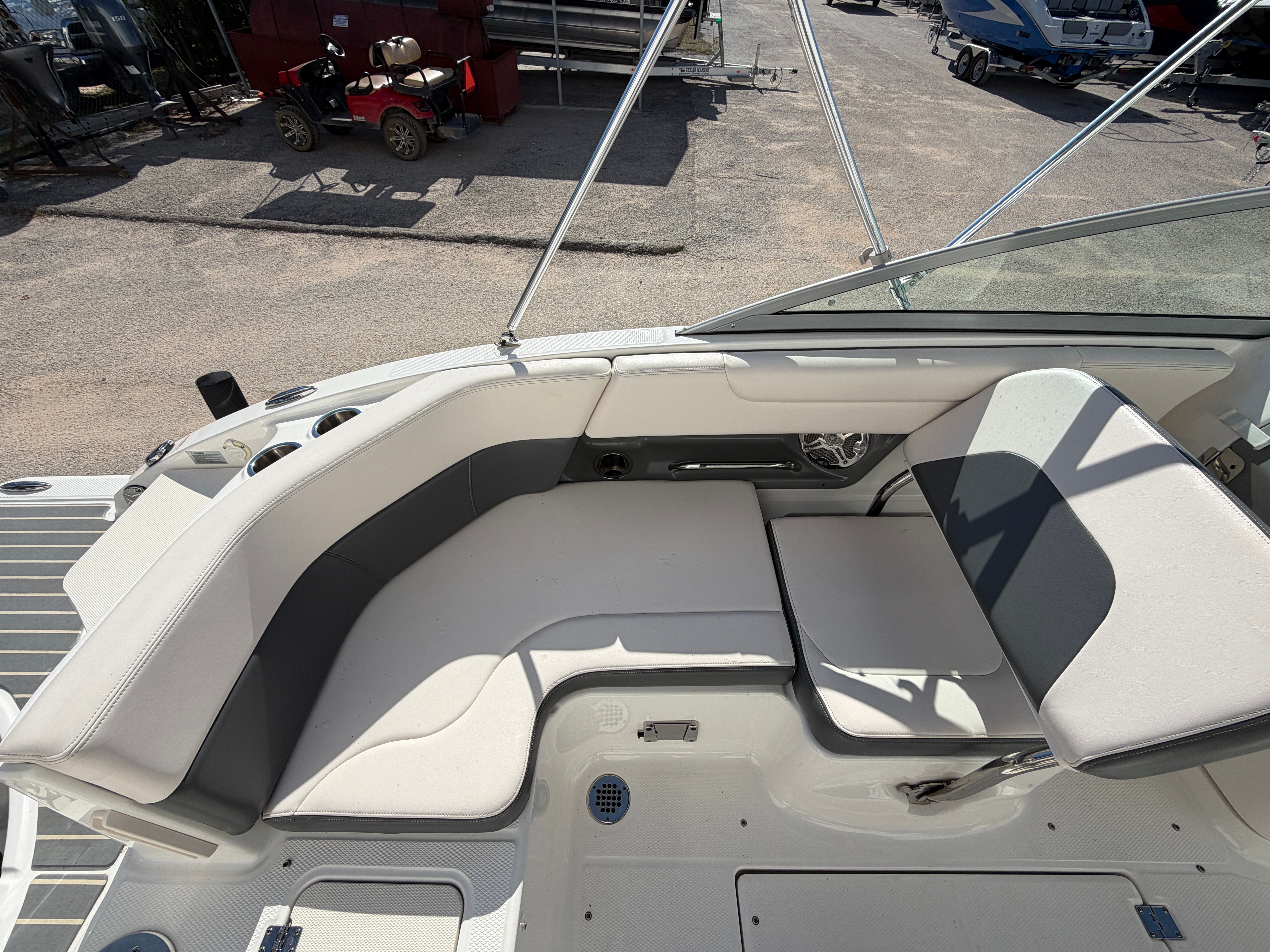 Under the hood, the Chaparral 210 Suncoast is powered by a robust 150-horsepower engine, delivering the perfect balance of speed, agility, and fuel efficiency. This Bowrider boat for sale is engineered for smooth acceleration and responsive handling, whether you’re navigating calm lakes or tackling choppier coastal waters. The 150 HP engine ensures you have plenty of power for towing water toys, wakeboarding, or simply cruising at your own pace. Chaparral’s reputation for performance shines through in the 210 Suncoast, offering reliable starts, consistent power delivery, and a ride that’s as exhilarating as it is comfortable.