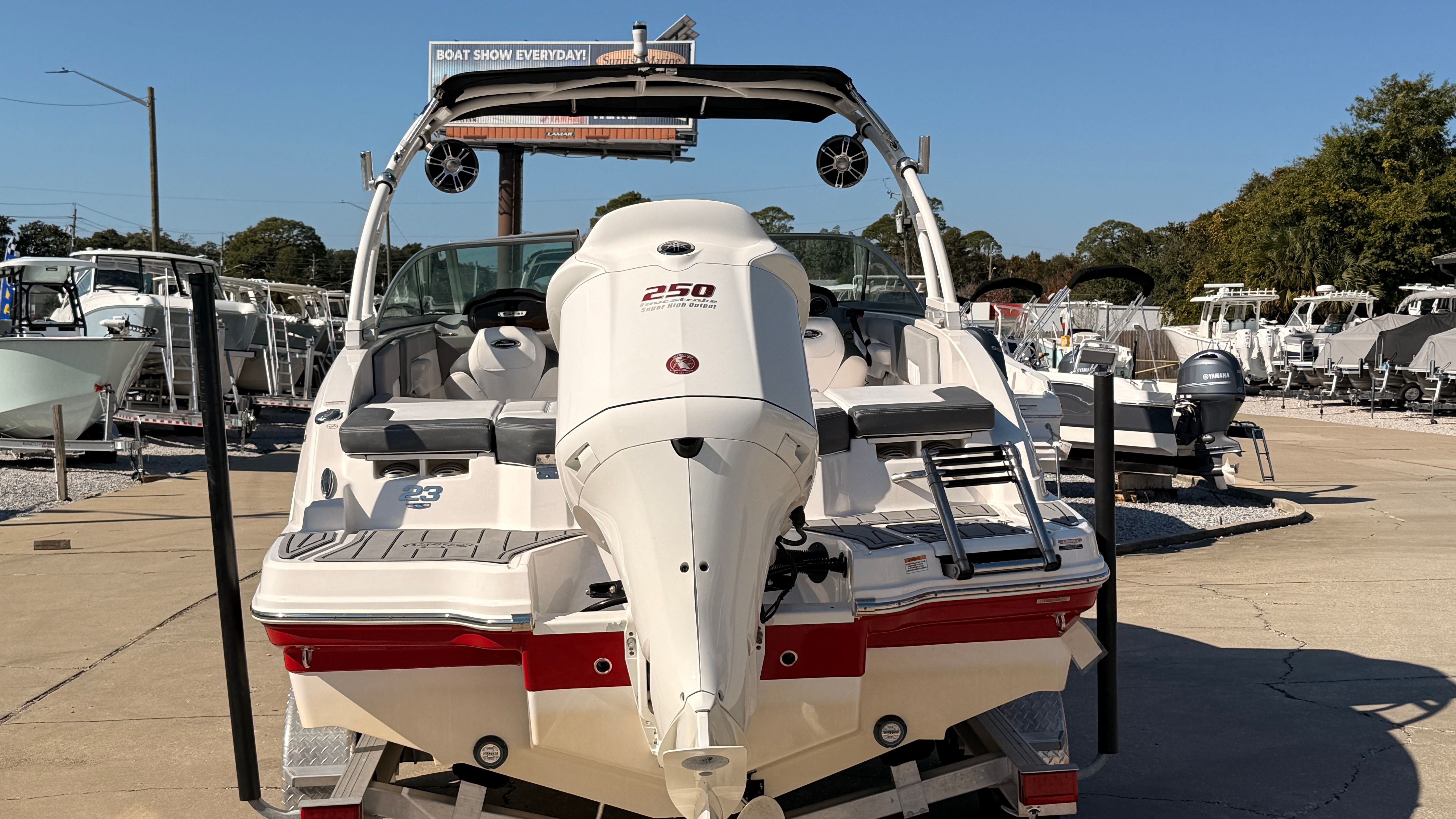 Powering the 2021 Chaparral 23 SSI OB is a robust single engine delivering an impressive 250 horsepower. This configuration ensures that the boat offers exhilarating acceleration, smooth cruising, and responsive handling, whether you are navigating calm lakes or venturing into more challenging waters. The 250-horsepower engine provides the perfect balance of power and efficiency, making it easy to enjoy water sports, tow inflatables, or simply cruise with confidence. The outboard setup not only enhances performance but also allows for easier maintenance and improved maneuverability, making this Chaparral boat for sale a smart choice for both new and experienced boaters.