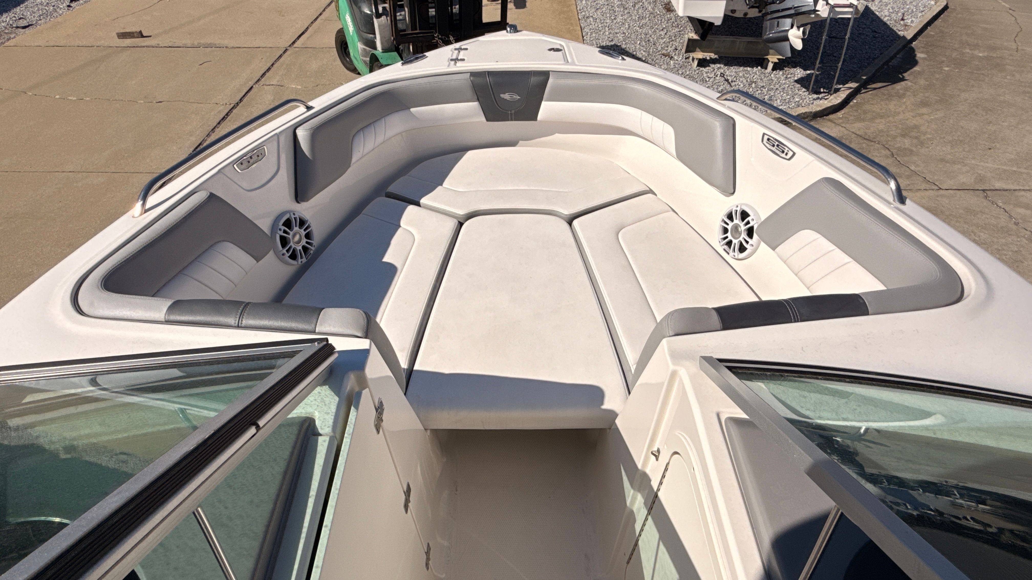 The Chaparral 23 SSI OB is packed with features that enhance both functionality and enjoyment. Its spacious bowrider layout offers generous seating arrangements, allowing guests to relax and socialize in comfort. The open design maximizes usable space, making it easy to move around the boat and enjoy every moment on the water. The high-quality construction and attention to detail are evident throughout, from the durable hull to the stylish upholstery.With a length of 23 feet, this bowrider boat for sale provides ample room for entertaining, sunbathing, or enjoying a picnic on the water. The ergonomic helm station is designed for intuitive control, ensuring that the captain can navigate with ease and confidence. Storage compartments are thoughtfully integrated throughout the boat, providing plenty of space for gear, water toys, and personal belongings, so you can keep the deck clutter-free and organized.