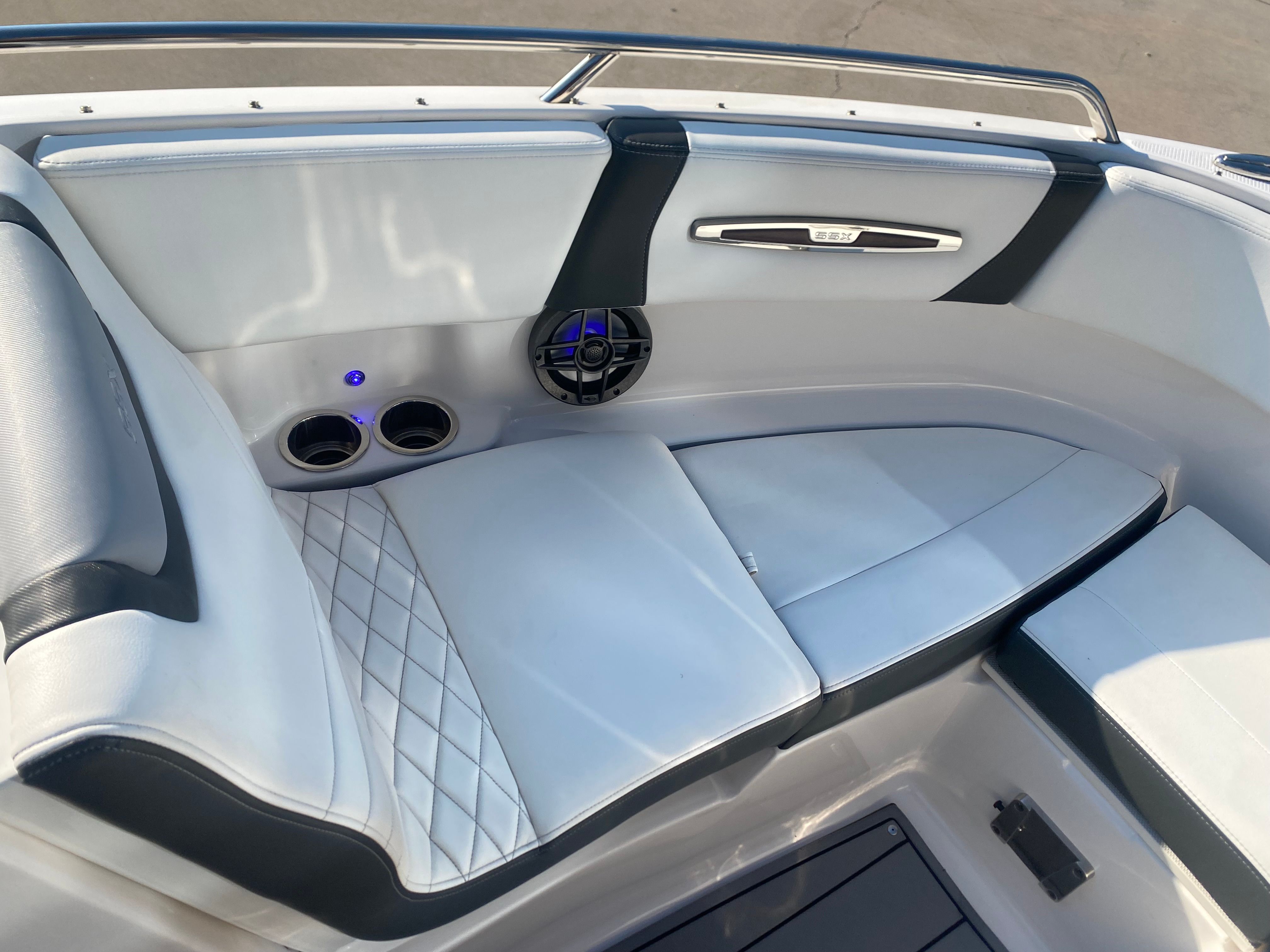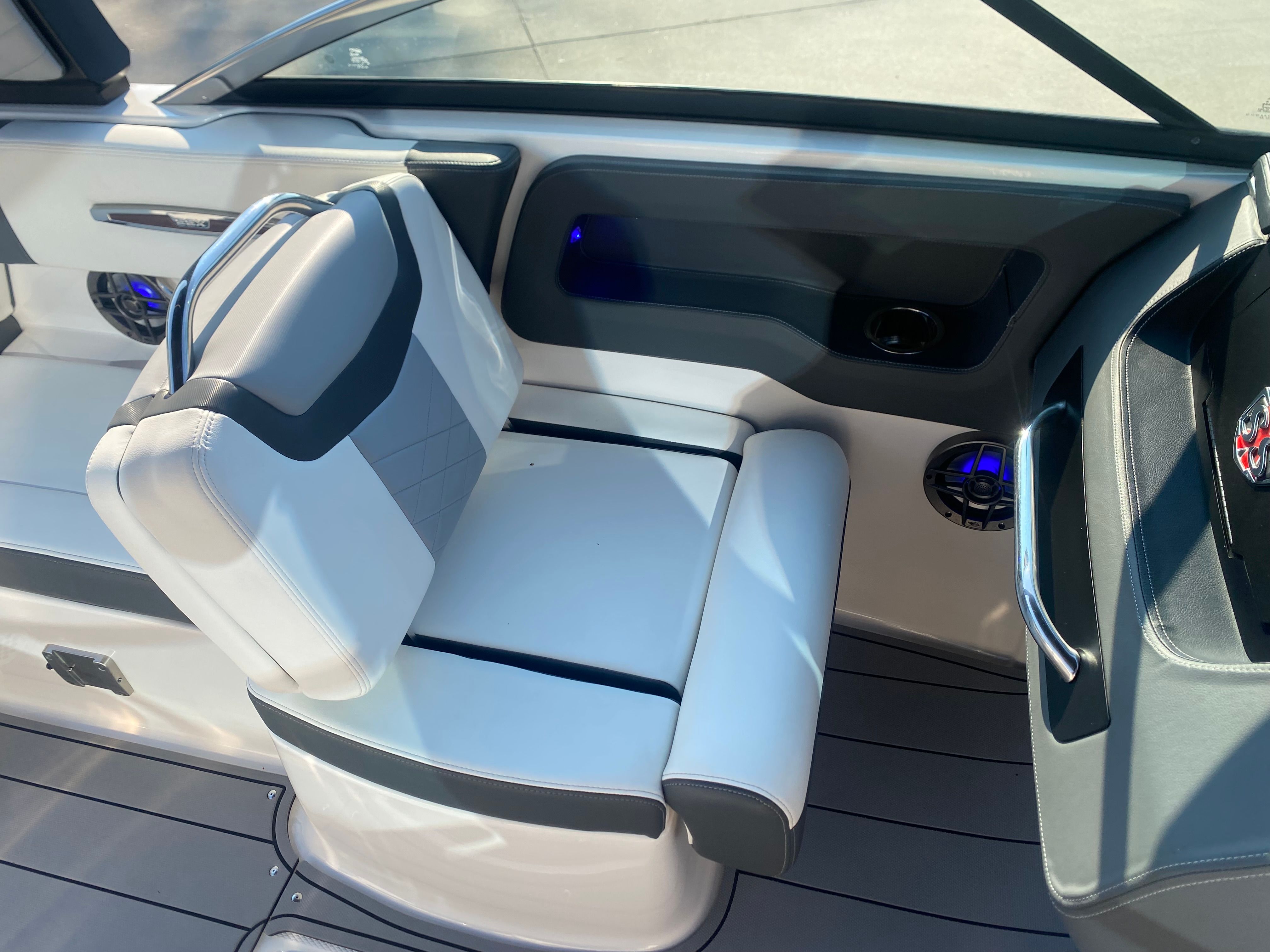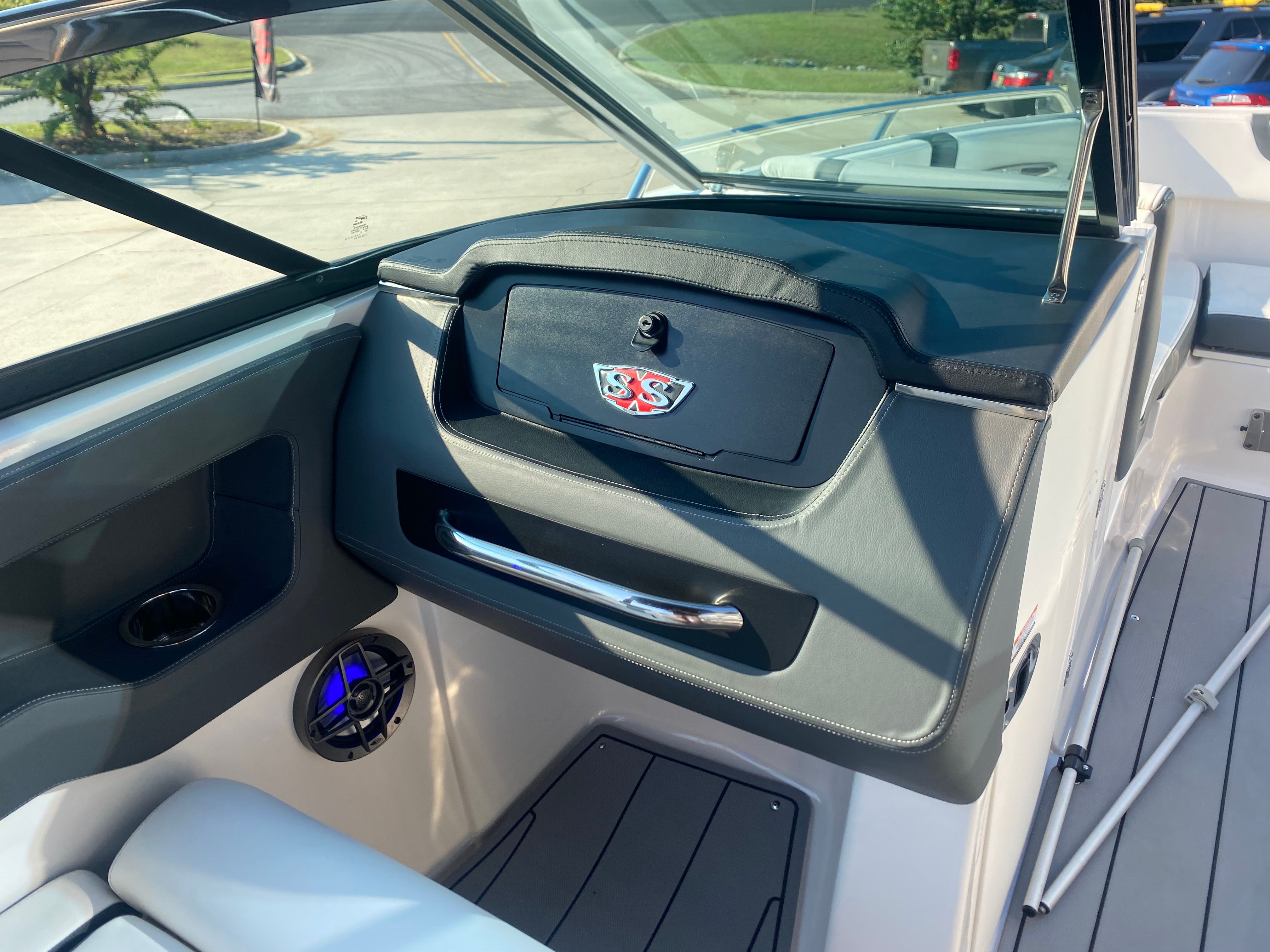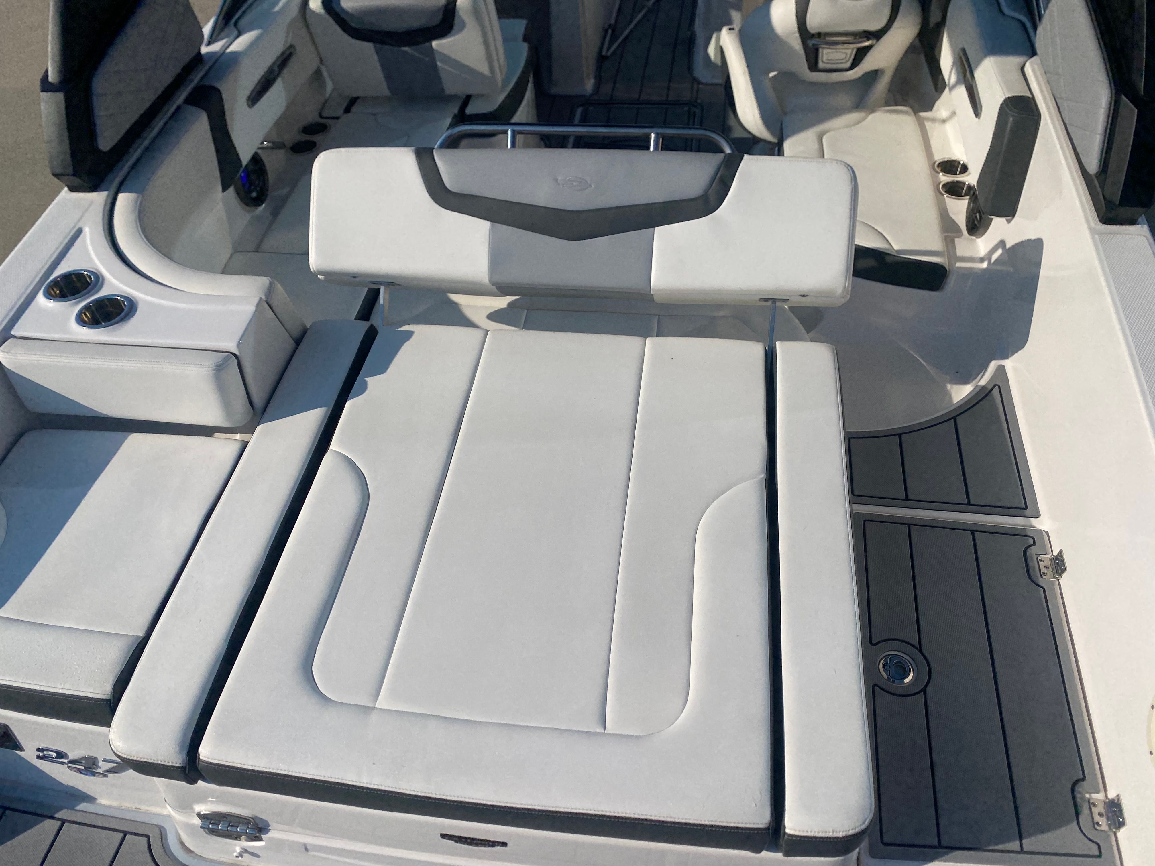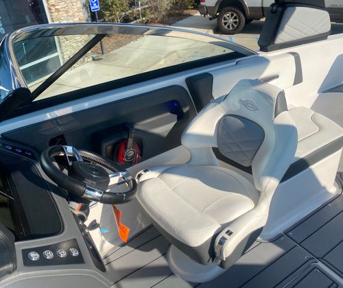 Clean, low-hour boats like this 2022 Chaparral 247 SSX don’t come around often—and when they do, they don’t last long. With only 26 hours on the powerful Volvo Penta 300, this boat delivers exceptional performance, handling, and reliability. It’s loaded with premium features including a power tower, dual Simrad displays at the helm, Clarion Bluetooth audio system with transom remote, extended swim platform, transom ladder, anchor storage, and abundant onboard storage including a spacious ski locker. The dual battery setup and interior lighting add convenience and peace of mind, making this boat perfect for all-day adventures on the water.