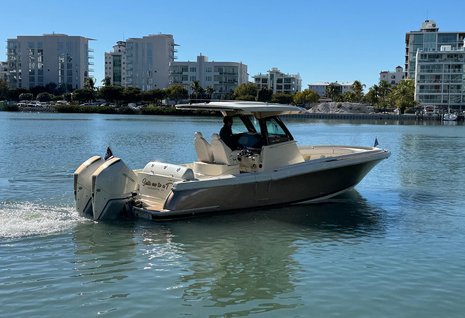 The expansive open bow offers dual forward-facing chaise loungers, as well as lavish wraparound bow seating. Convenience abounds with sealed, fully finished storage lockers in-floor and under the seats, plus well-placed cupholders for entertaining ease.