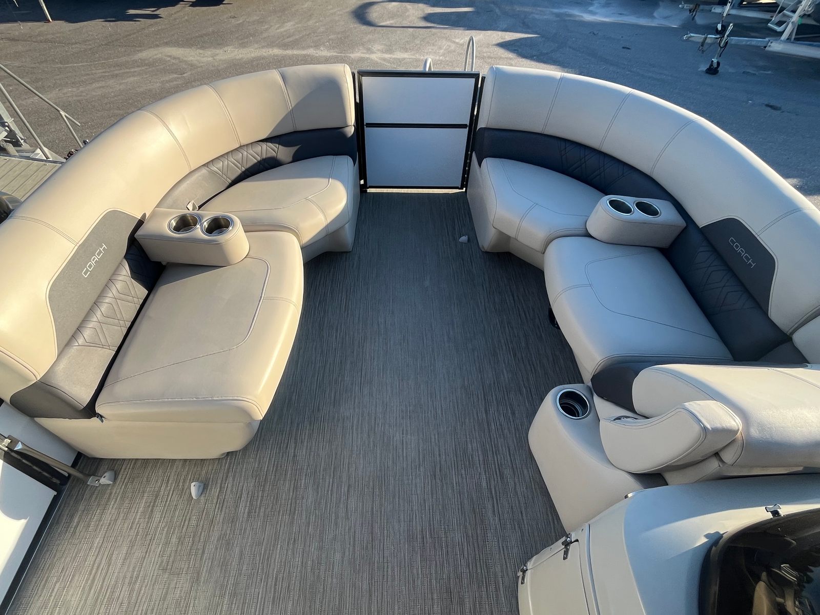 Powering the Coach 230RFC is a single engine delivering an impressive 250 horsepower, giving you the muscle needed for a variety of on-water activities. Whether you are cruising at a leisurely pace or picking up speed for water sports, this pontoon boat offers smooth handling and responsive acceleration. The 250 HP engine ensures that you can easily navigate busy waterways, tow water toys, or simply enjoy a brisk ride across the lake. The performance of this Coach boat for sale is both exhilarating and dependable, making it a fantastic choice for boaters who demand both power and reliability.