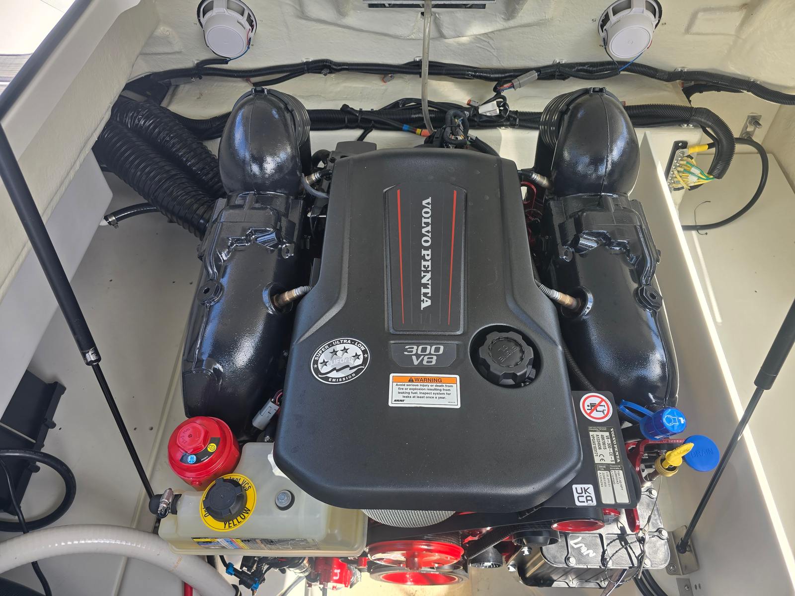 Powering the 2024 Cobalt R4 is a robust single engine delivering an impressive 300 horsepower. This configuration ensures a thrilling ride, whether you’re slicing through calm waters or tackling choppier conditions. The responsive handling and smooth acceleration make this bowrider boat a joy to captain, offering both seasoned boaters and newcomers an exhilarating experience. The engine’s power is perfectly matched to the R4’s hull design, providing optimal speed, agility, and fuel efficiency for a variety of on-water activities.