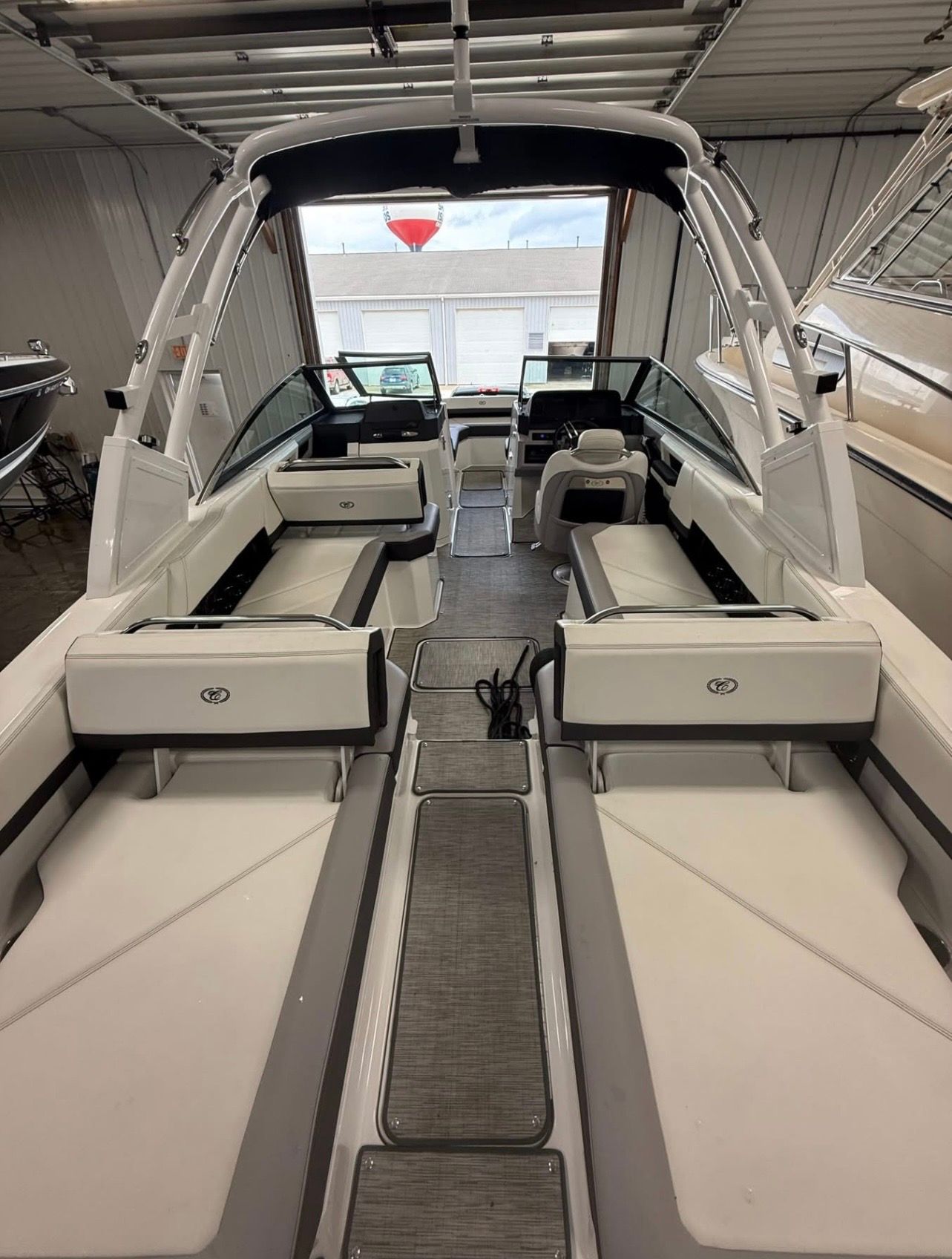 This Cobalt boat for sale comes loaded with features designed to enhance your time on the water. The dual battery system ensures reliable power for all your electronics and accessories, while the battery charger keeps you ready for every outing. The aft bench seat offers a comfortable spot to relax and enjoy the view, and the bow seating area is perfect for sunbathing or socializing. The black canvas bow cover provides protection from the elements, preserving the boat’s pristine condition. Enjoy shade on hot days with the bimini top, and experience plush comfort underfoot with the cockpit carpet. The cockpit coaming bolsters add an extra layer of luxury, making every ride smooth and enjoyable. With its thoughtful design and premium materials, the R6 OB is built for both style and durability.